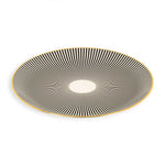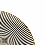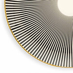 Introducing the Lustre Dinner Plate by 1882 Ltd from their Lustre collection, an award-winning series of bone china crockery paired with 22-karat gold. This plate, crafted from fine bone china with black decals and hand-gilded 22-carat gold details, is a true masterpiece. Designed by Bethan Gray, it features her iconic hand-drawn Dhow pattern, inspired by the billowing sails of Oman's sailing boats. The Johnson Brothers legacy of craftsmanship, established in 1882, shines through in this luxurious plate, blending elegance and sophistication. Add this exquisite piece to your collection and elevate your dining table with refined luxury.