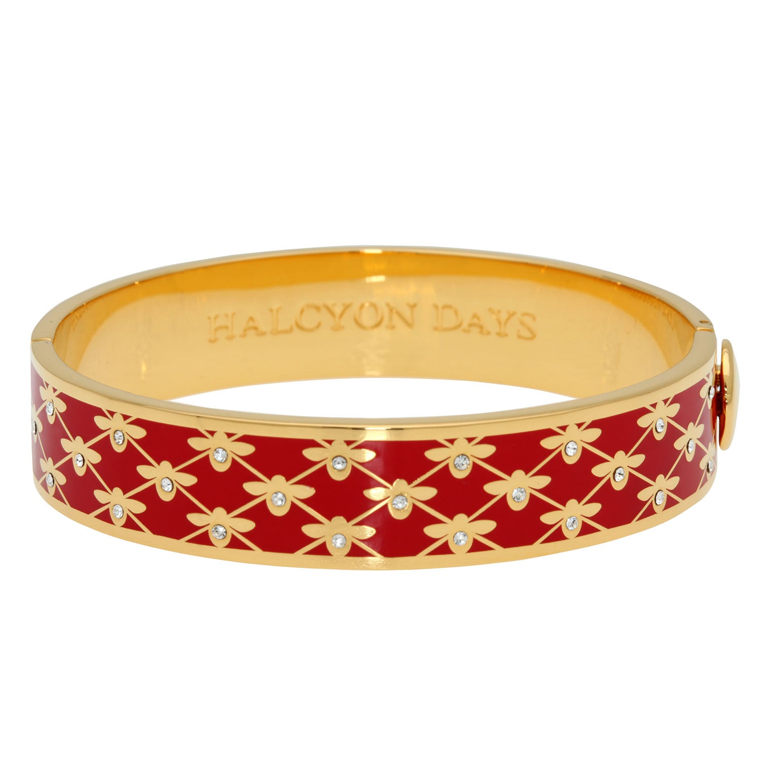 Bee Sparkle Trellis Red & Gold - Hinged Bangle - 13mm