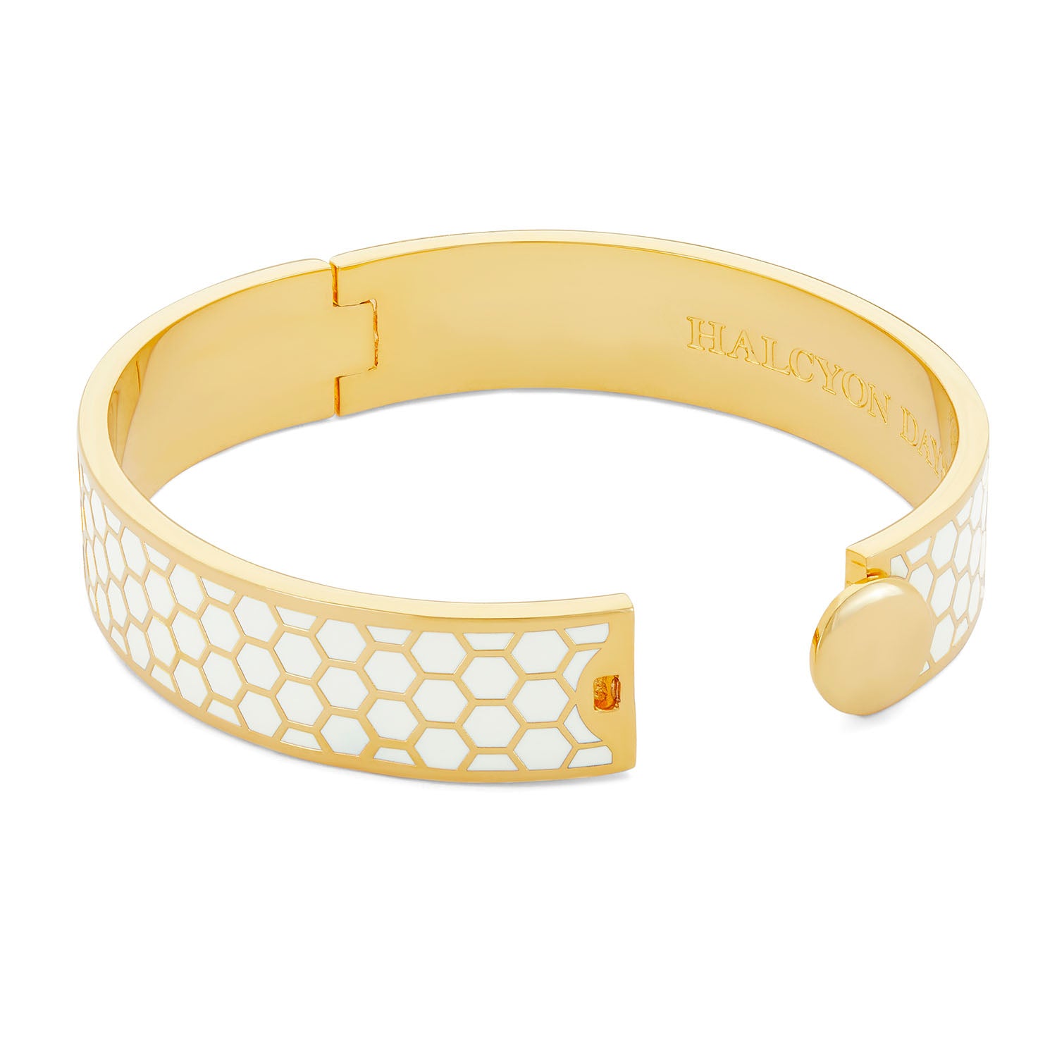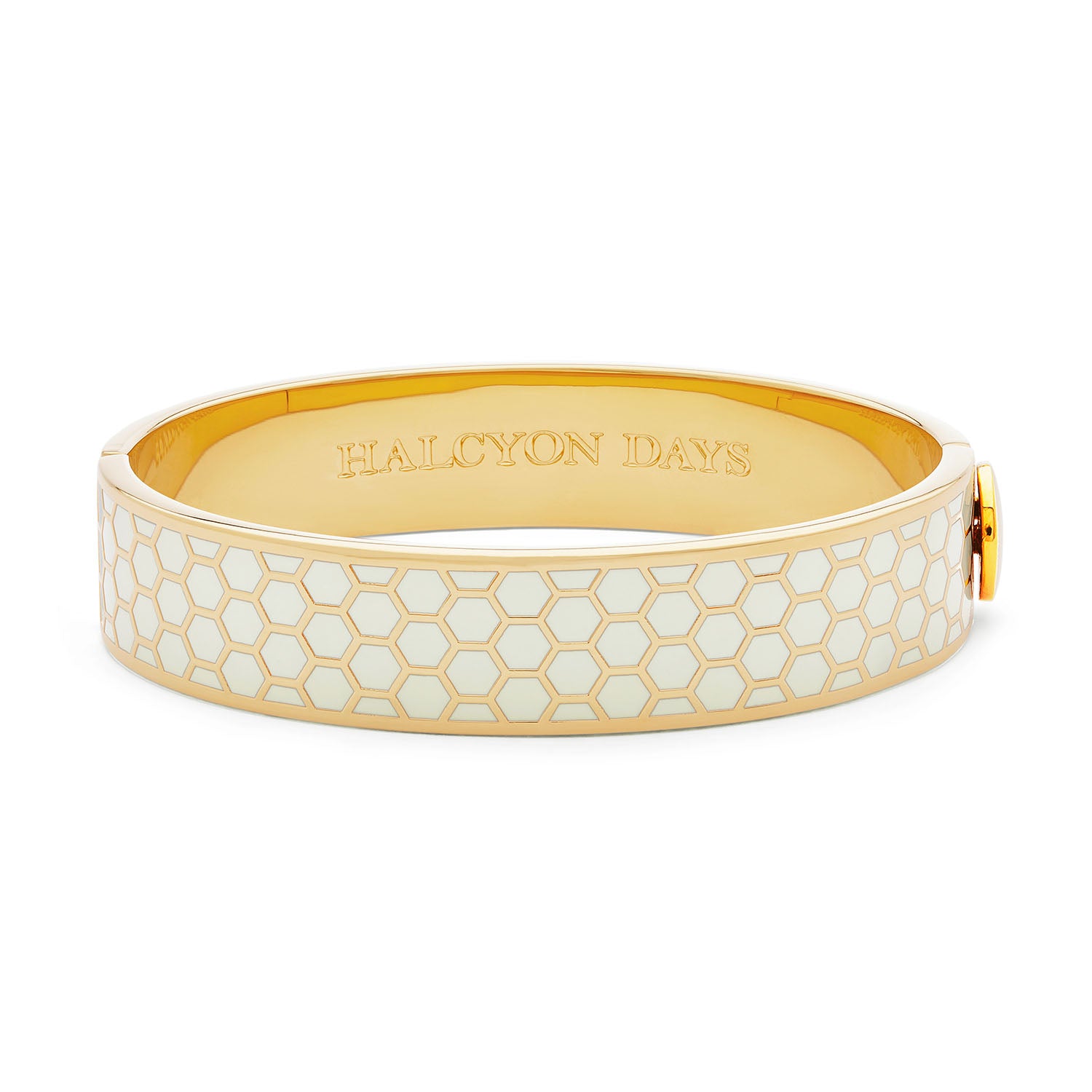Honeycomb Cream & Gold - Hinged Bangle - 13mm