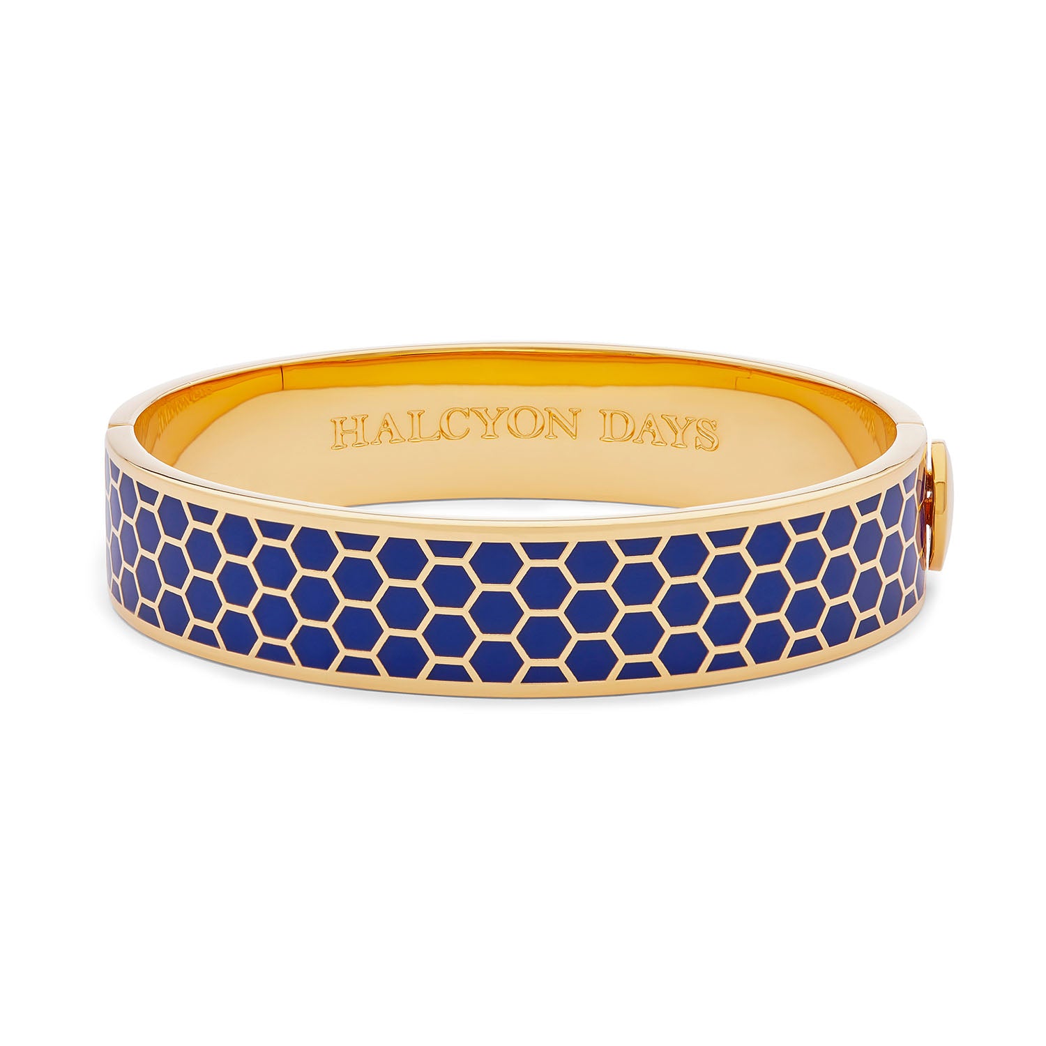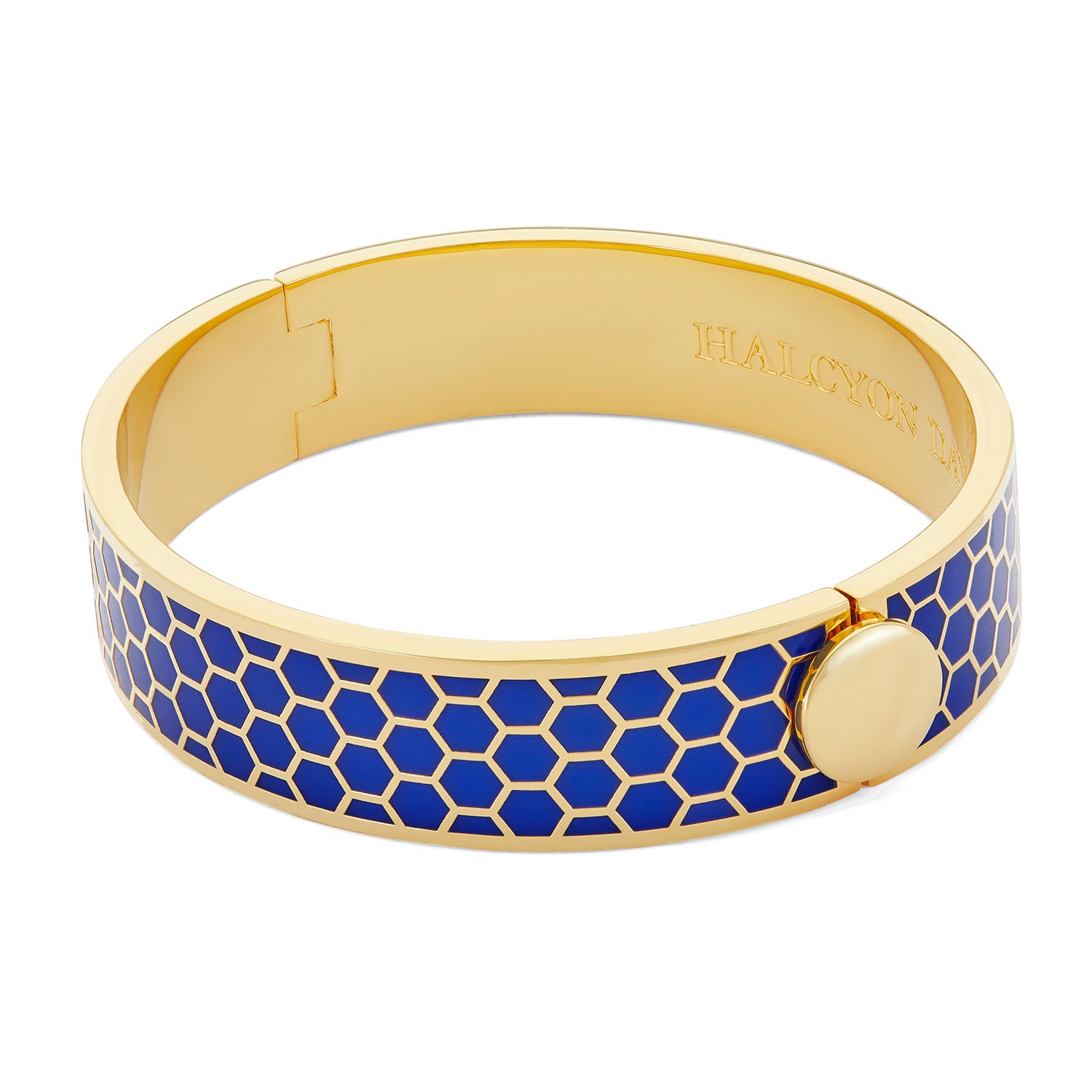 Honeycomb Deep Cobalt & Gold - Hinged Bangle -13mm