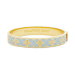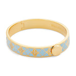 The Agama Sparkle Forget Me Not & Clear Golden Hinged Bangle offers a refined fusion of elegance and contemporary style. Its delicate light blue enamel is accented by luminous gold details that shimmer gracefully with every gesture. Crafted to impart a subtle yet striking brilliance, this bangle seamlessly complements both casual and formal attire. Whether featured solo for a clean, understated look or combined to create a layered effect, it enhances your ensemble with its sleek, sophisticated design. Bring an element of enduring elegance to your collection with this versatile, expertly crafted accessory.