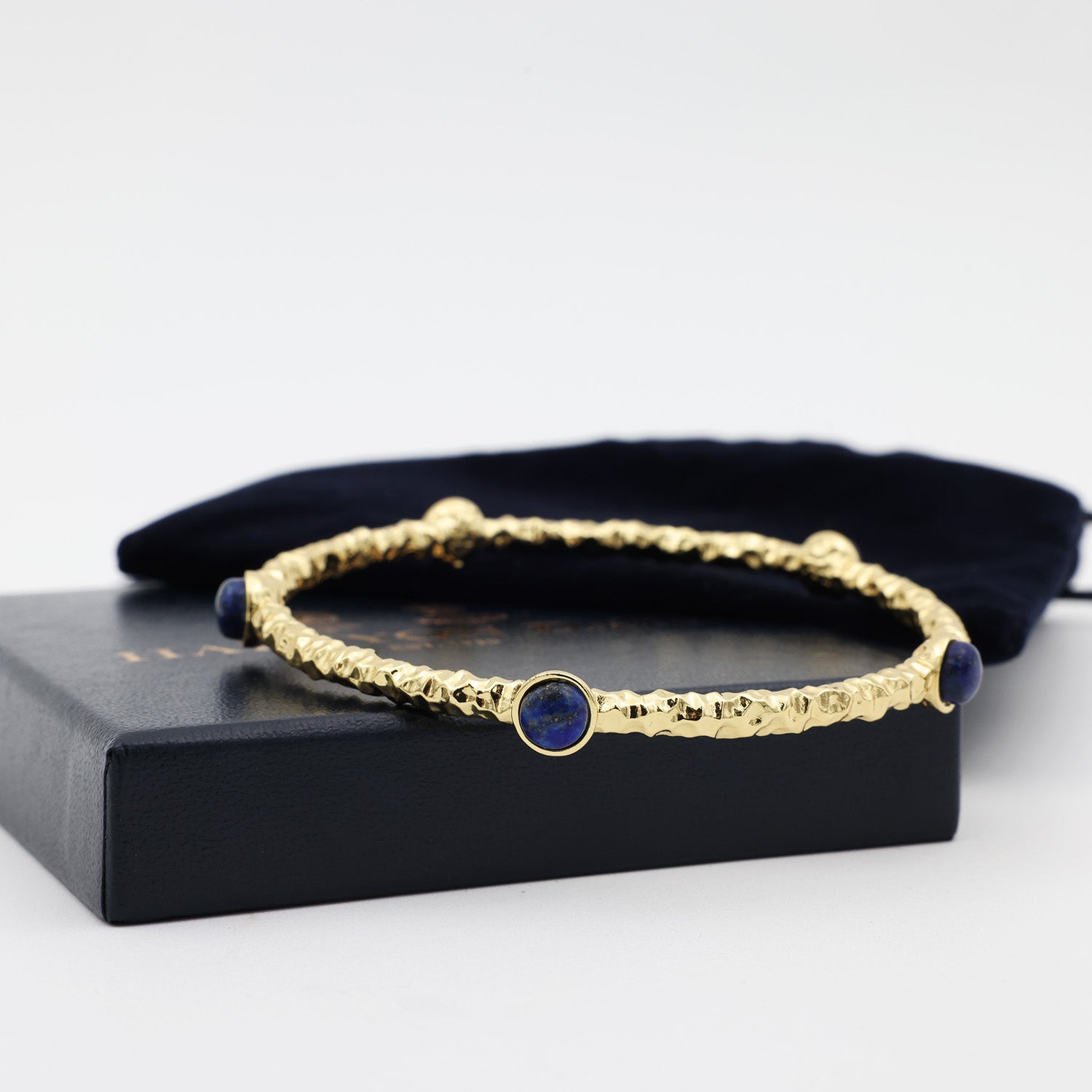 This Cabochon Bangle orbits perfectly around your wrist with one simple push. A mini solar system of 5 cabochons circulate the 18ct gold-plated band; this piece is designed to be worn solo for a sleek, understated look or stack with our other bangles for statement accessorising.