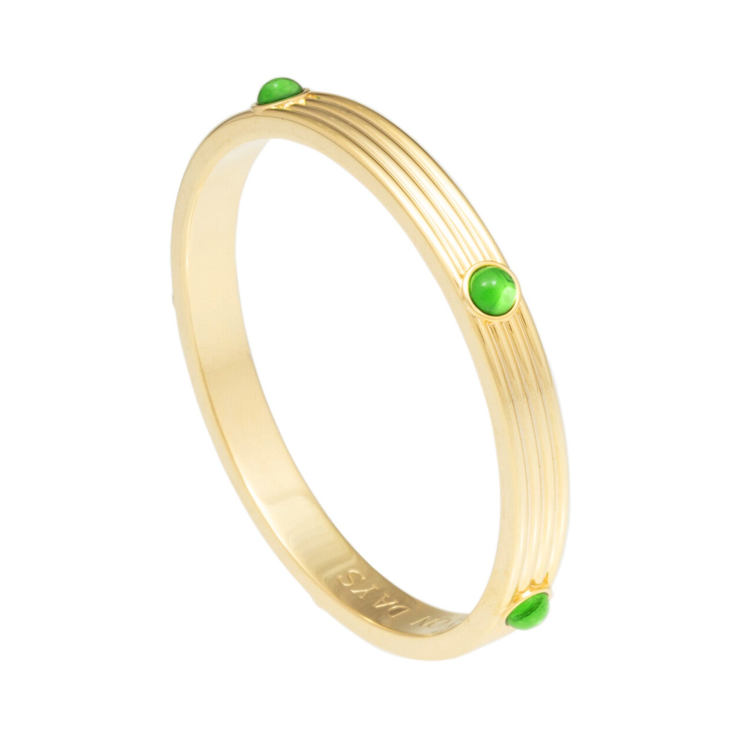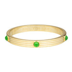 Introducing the Ribbed Cabochon, our latest show-stopping bangle.This exquisite piece features of a Gold ribbed band, beautifully contrasted with lustrous cabochon gemstones for a striking blend of bold design and refined elegance.The combination of textures creates a timeless look, perfect for adding a touch of sophistication to any outfit. Designed with attention to detail and crafted for comfort, this bracelet is a statement of luxury and modern flair whether worn alone or stacked.