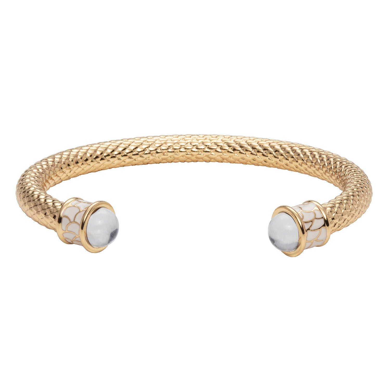 This versatile, hugely popular accessory is fitted with glistening glass cabochons at either end, and lends itself beautifully both to stacking with other styles or wearing solo.
