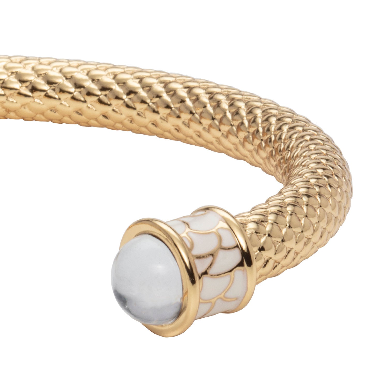 Our Salamander Torque bangle is crafted from 18ct gold plated brass and can be squeezed for the perfect fit.