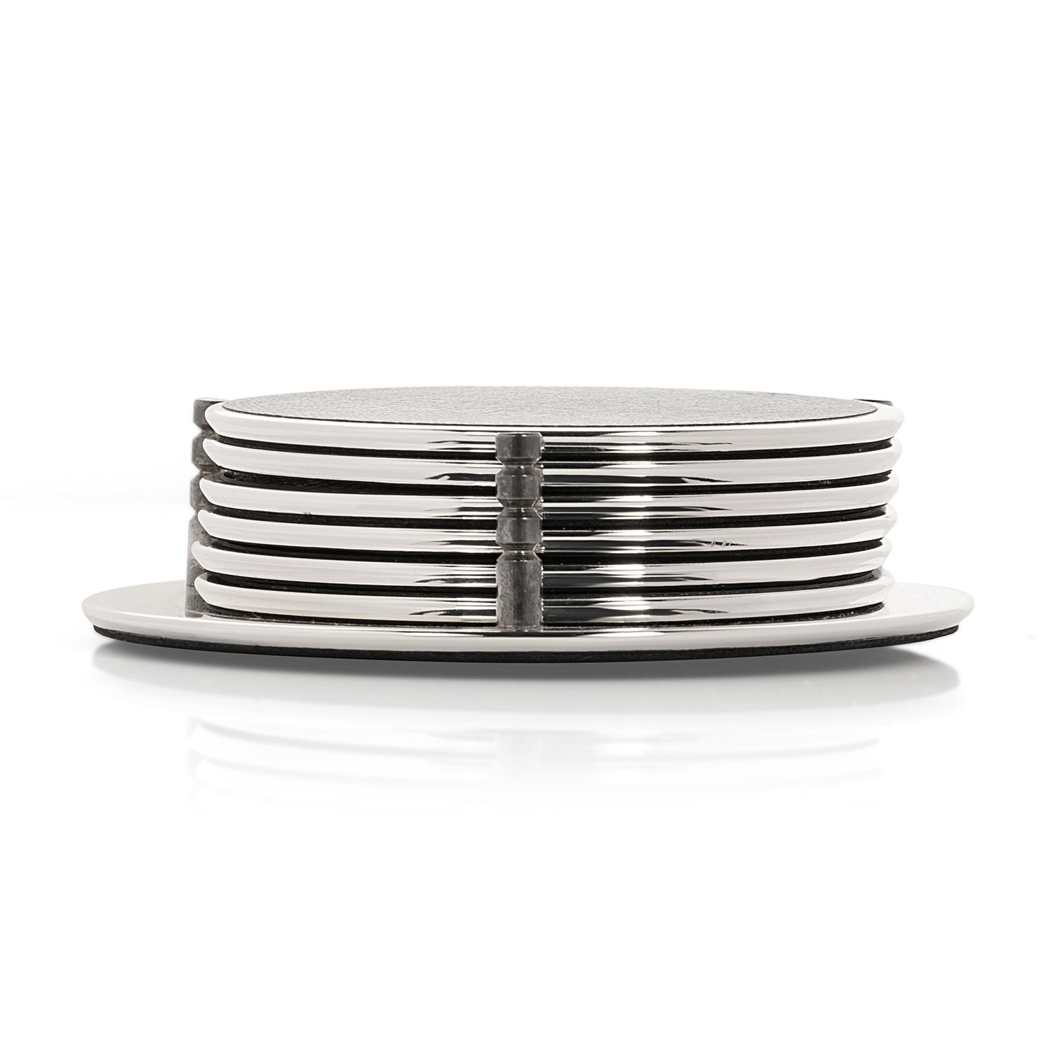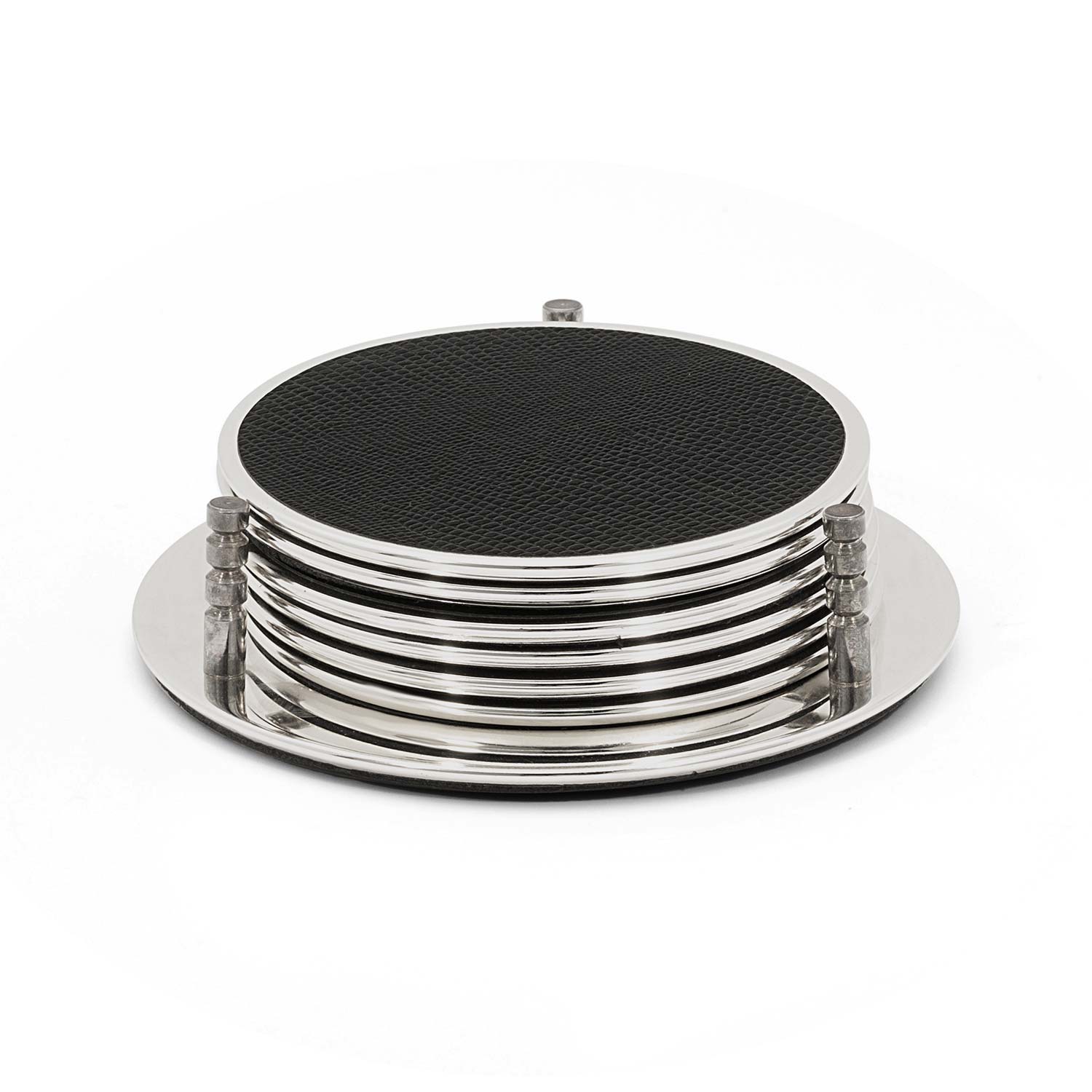 Silver-Plated Black Faux Shagreen Drink Coasters – Set of 6