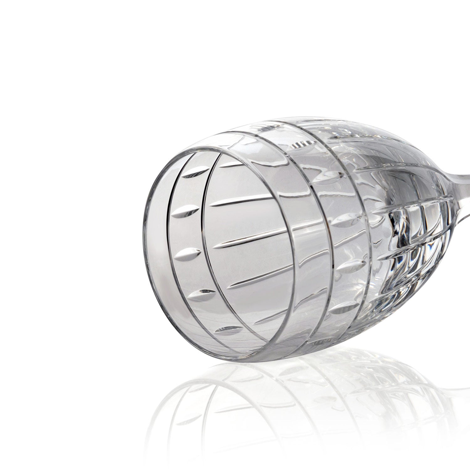 The Crystal Regency Wine Glass - Large, launched in 2015, celebrates the elegance of traditional craftsmanship. This luxury wine glass, handcrafted from 24% lead crystal, features intricate engraved designs. Produced by a small team of skilled artisans, each piece reflects centuries-old techniques. Ideal for luxurious toasts, this fine crystal, mouth-blown wine glass is a beautiful addition to any sophisticated table setting.