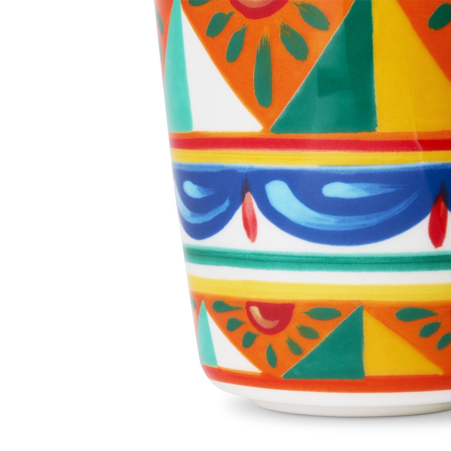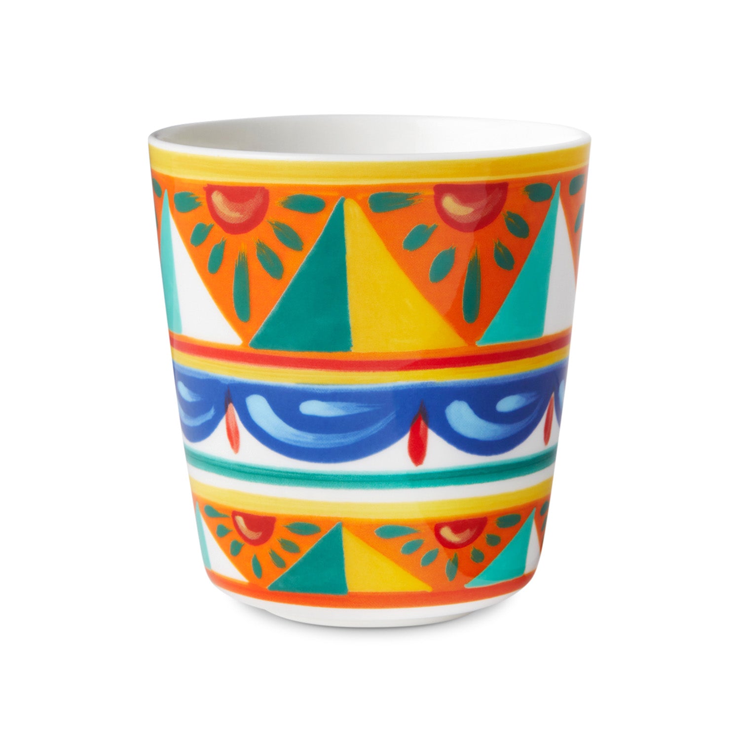 This exquisite glass, crafted from high-quality porcelain, showcases a beautiful pattern influenced by the iconic Carretto Siciliano scarf print. The design reflects the rich traditions, stunning landscapes, and vibrant colors that are at the core of Dolce&Gabbana's aesthetic. To create this luxurious piece, the decorative elements are carefully applied to the porcelain in three firings, resulting in a flawlessly smooth finish. With its durable construction, this glass is resistant to scratches and abrasions, making it a long-lasting addition to your collection.