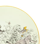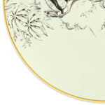 Introducing the Carnets Presentation Plate, a masterpiece of fine white porcelain featuring a captivating design of two monkeys on a tree, spreading horizontally across the plate. This exquisite piece is hand-painted with meticulous detail and adorned with 24k gold accents, adding a touch of luxury and sophistication. Perfect for elegant dinners and special occasions, this plate seamlessly blends art and functionality, making it a standout addition to any crockery collection.