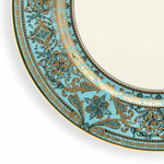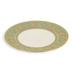 The Haviland Matignon Charger Plate comes with an elegant design in shades of blue, encircling the servicing space. The intricacy of the work can be seen in the highly delicate design work made using dark light shades. An important part of any fine dining experience, the charger plate comes with porcelain construction along with 24k gold paint.