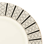 The Velocity Presentation Plate, originally crafted for the Prince of Wales, showcases a distinguished hallmark and a border embellished with symmetrical blue stripes and intricate DNA designs. Made from fine bone china and adorned with hand-painted platinum accents, this plate exemplifies luxury and sophistication. Perfect for showcasing culinary masterpieces or as a decorative piece in your dining room, it adds a royal touch to any table setting, making it a prized possession in high-end crockery collections.