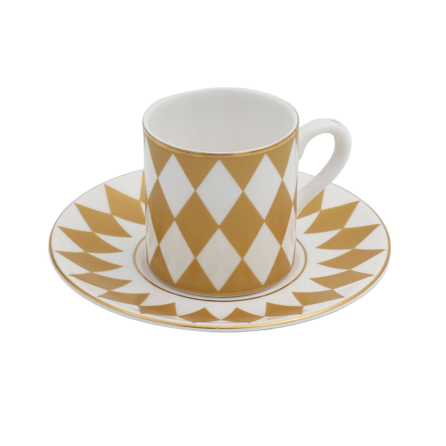 This stunning set of six coffee cups and saucers features our vibrant Parterre design in gold and white. Crafted from English fine bone china and hand gilded for a luxurious finish, this exquisite set is delivered in a beautiful presentation box creating the perfect gift! Gilded with 24ct gold.