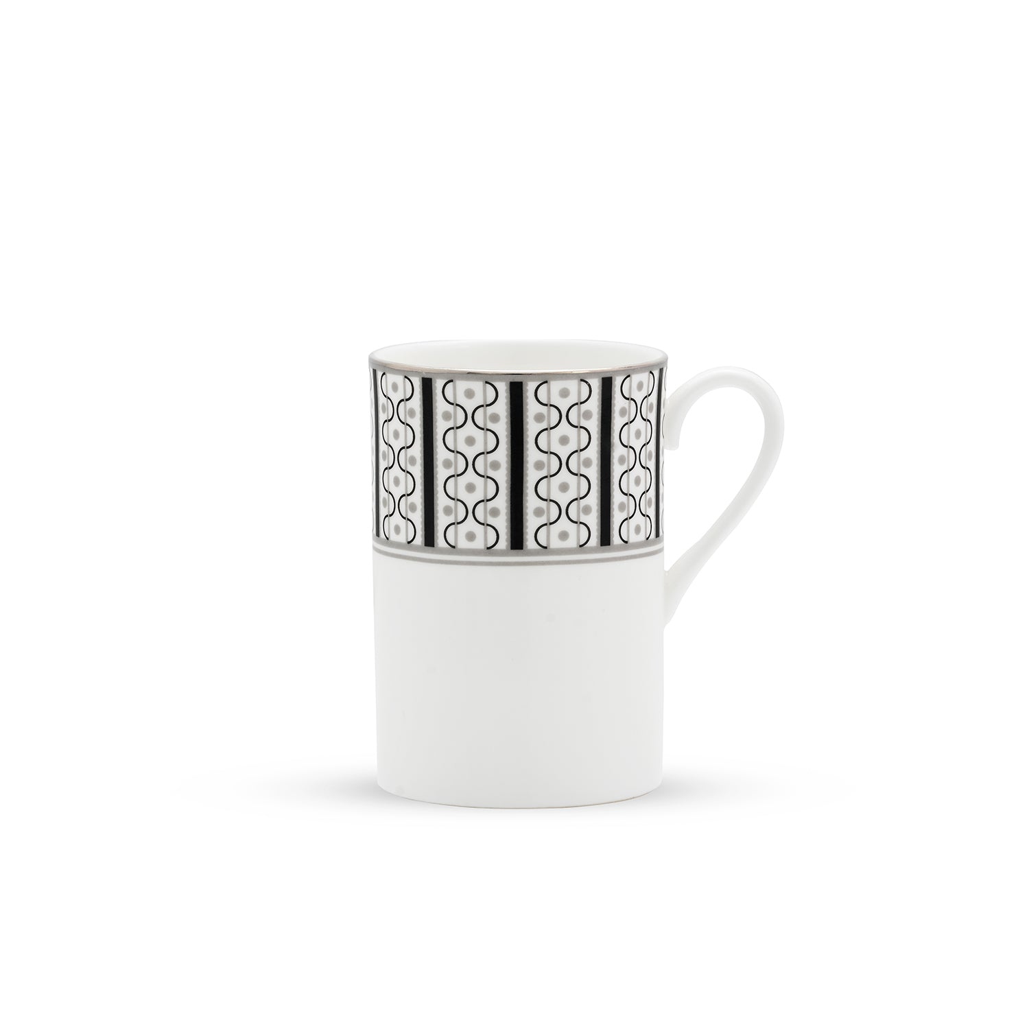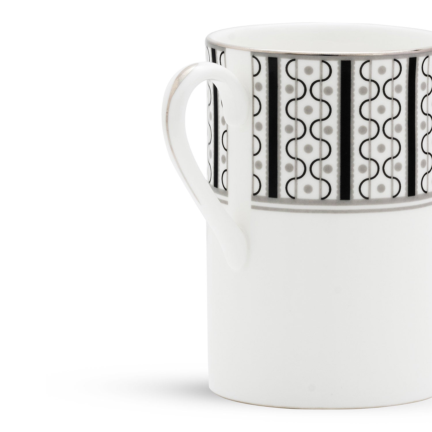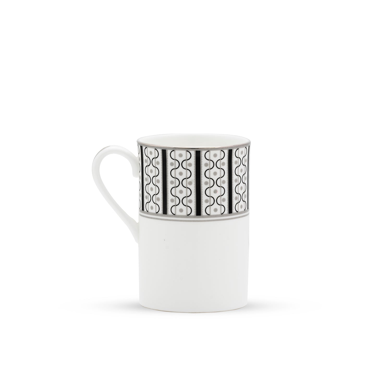 Elevate your tea or coffee experience with the Velocity Mugs, designed for the Prince of Wales. Featuring a distinguished hallmark and a border embellished with symmetrical blue stripes and DNA-inspired designs, these mugs are crafted from fine bone china and hand-painted with platinum accents. Perfect for enjoying beverages in royal style, they combine elegance with practicality, making them a luxurious addition to your crockery collection.