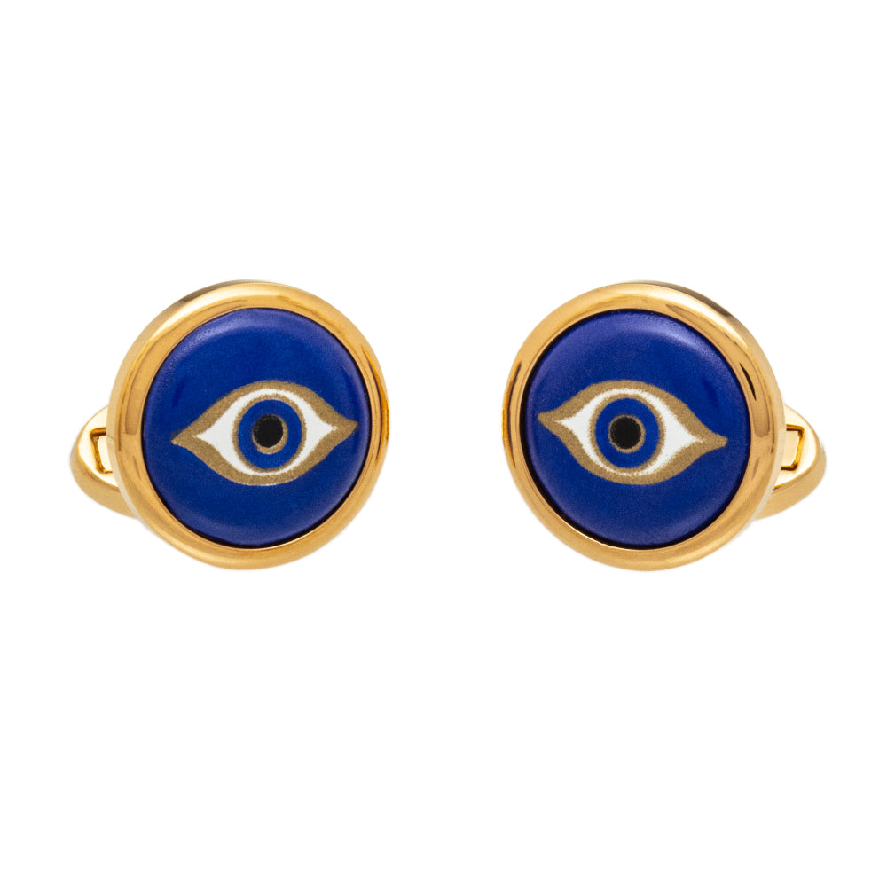 Evil Eye Cobalt Round Gold Cufflinks