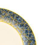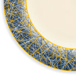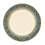 Elevate your dining experience with the Thomas Goode Dinner Plate, featuring a gold-painted internal rim and a blue border adorned with intricate golden patterns. This hand-painted plate is a blend of luxury and functionality, perfect for special occasions or everyday use. The detailed craftsmanship ensures each plate is unique, adding a touch of sophistication to your table setting. The elegant design and high-quality materials make it a standout piece in any dinnerware collection, providing both aesthetic appeal and practical use for your dining needs.