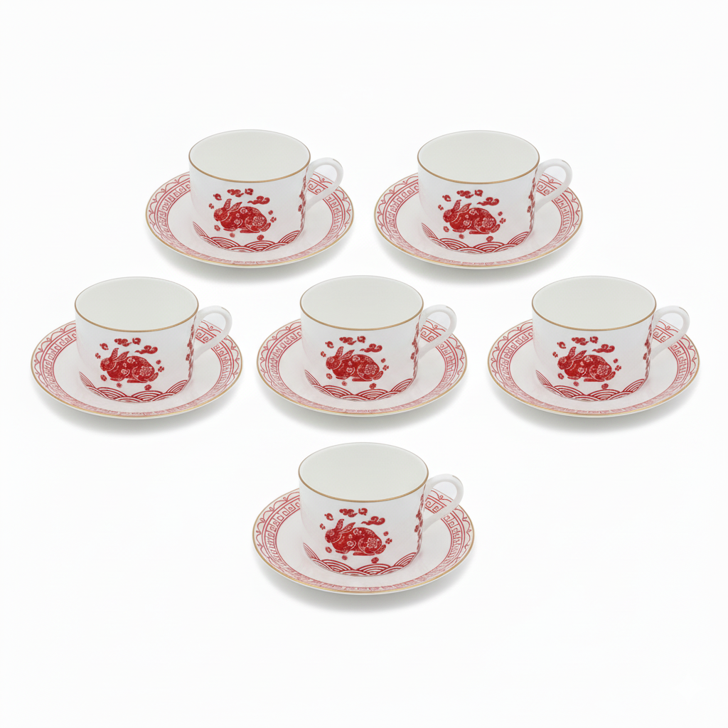 Celebrate tradition with the Year of the Rabbit Tea Cup & Saucer set, featuring two, four and six exquisitely crafted pieces. Each cup and saucer reflects elegant design inspired by the lunar zodiac, perfect for sophisticated tea service or gifting. Made to enhance the tea experience, this set combines timeless artistry with functional beauty. Ideal for collectors and connoisseurs seeking refined tableware with cultural significance.