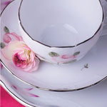 Vienna Rose Grande 15 Piece Tea Set with Tea Stove Hand Painted Platinum Accents