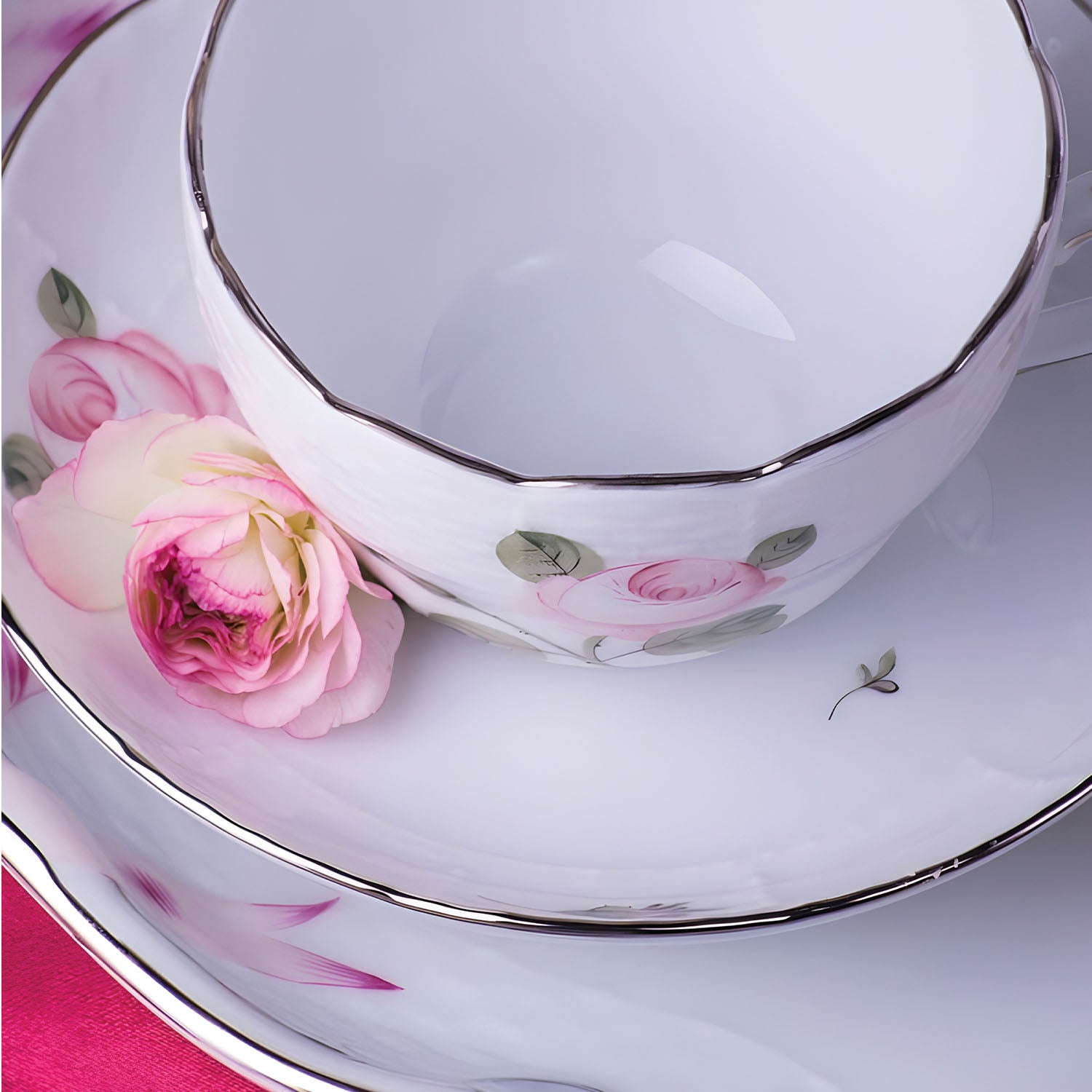 This exquisite 15-piece tea set with stove draws inspiration from Vienna's storied porcelain heritage, featuring the iconic Vienna Rose pattern that captivated European courts since the Biedermeier era. Each piece showcases hand-painted scattered rosebuds and delicate floral motifs, unified by refined platinum accents and soft grey tones that evoke timeless sophistication. The collection includes a matching tea stove, completing a service designed for those who appreciate authentic craftsmanship and historical elegance. The harmonious interplay of botanical artistry and contemporary luxury makes this set an ideal choice for formal entertaining or as a distinguished collector's piece that honors centuries of porcelain tradition.