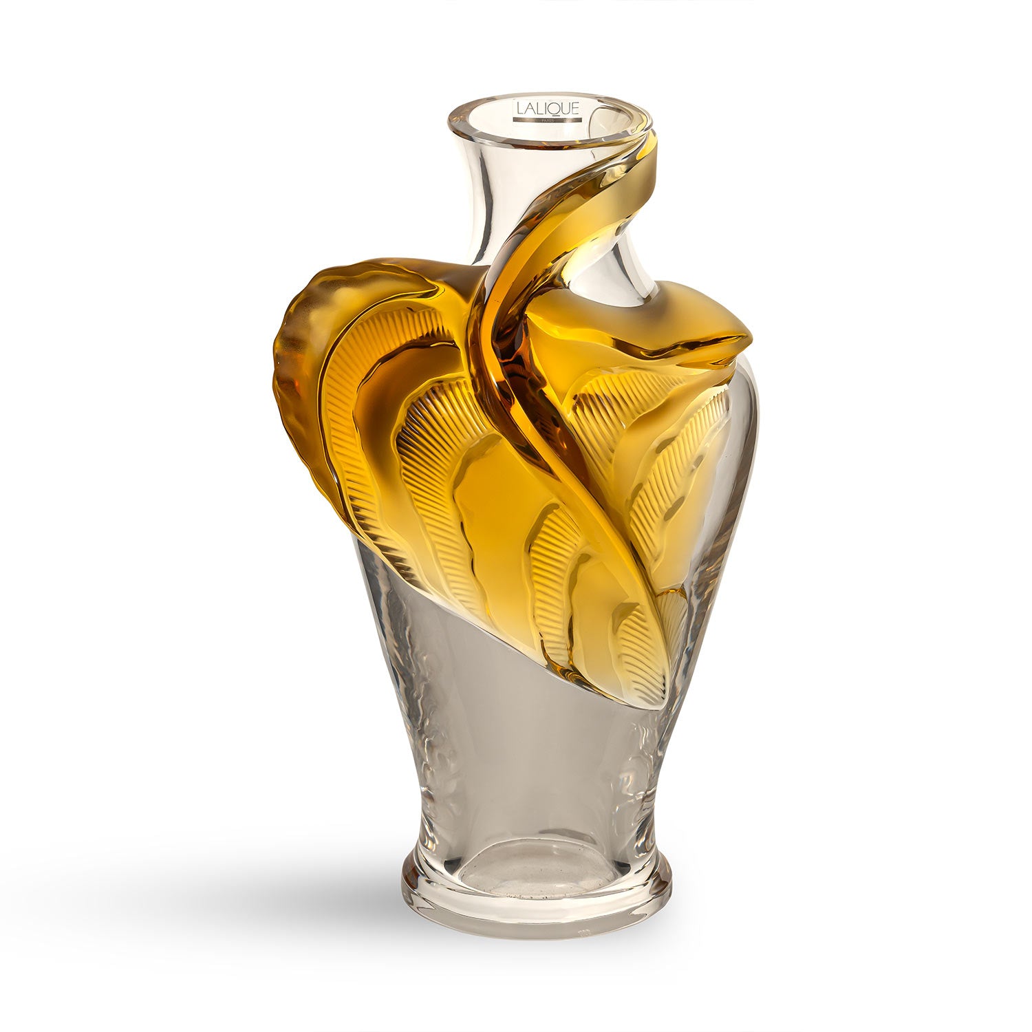 Crafted from fine crystal, the Amber Vase boasts an elegant shape adorned with gilded crystal maple leaves, making it a one-of-a-kind piece. Whether showcasing flowers or standing alone, its graceful accents bring a luxurious vibe to any space, enhancing the ambiance with timeless elegance and artistic allure.