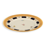 Made with superior craftsmanship, the Flower Side Plate presents a detailed design pattern. Its outer rim is enriched with 24k gold paint accents, enhancing its visual appeal. The middle section displays a symmetrical geometric black box pattern, delicately framing colorful flowers at its center. Ideal for serving appetizers or desserts with style, this plate embodies refined elegance and artistic charm.