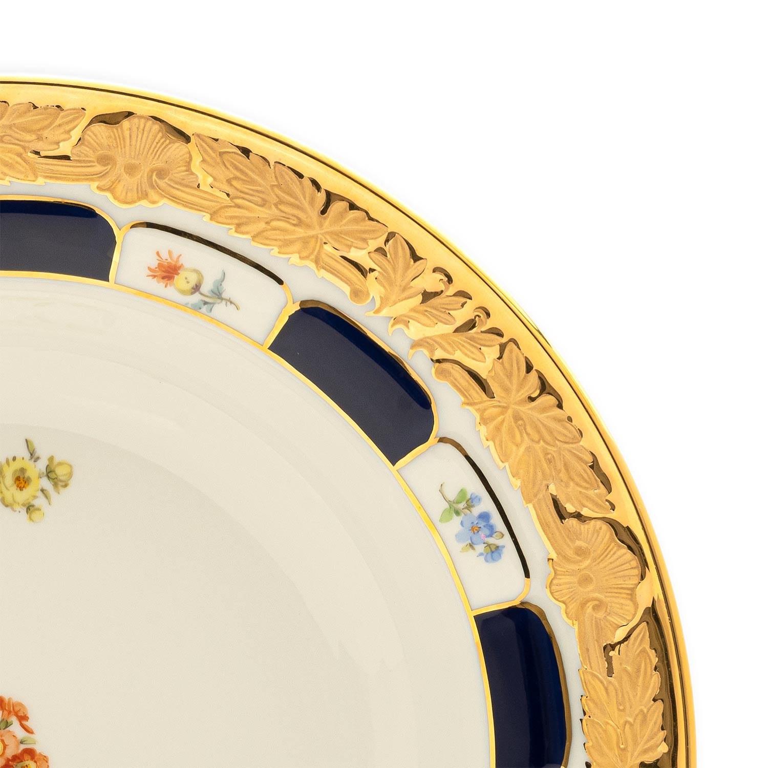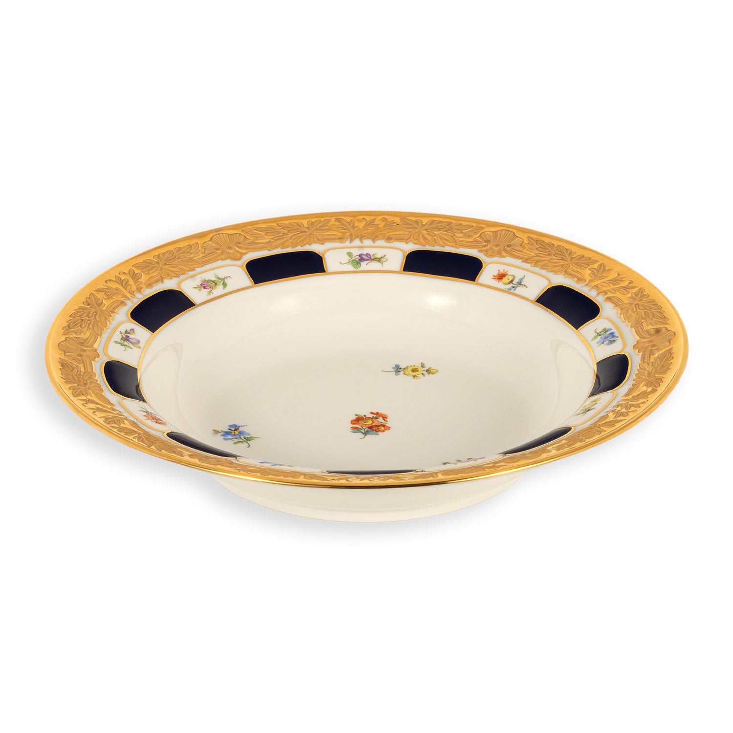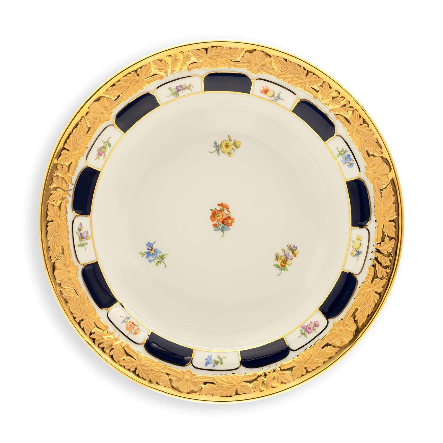 B-Form Royal Blue Gold Bronze Strewn Flowers Soup Plate