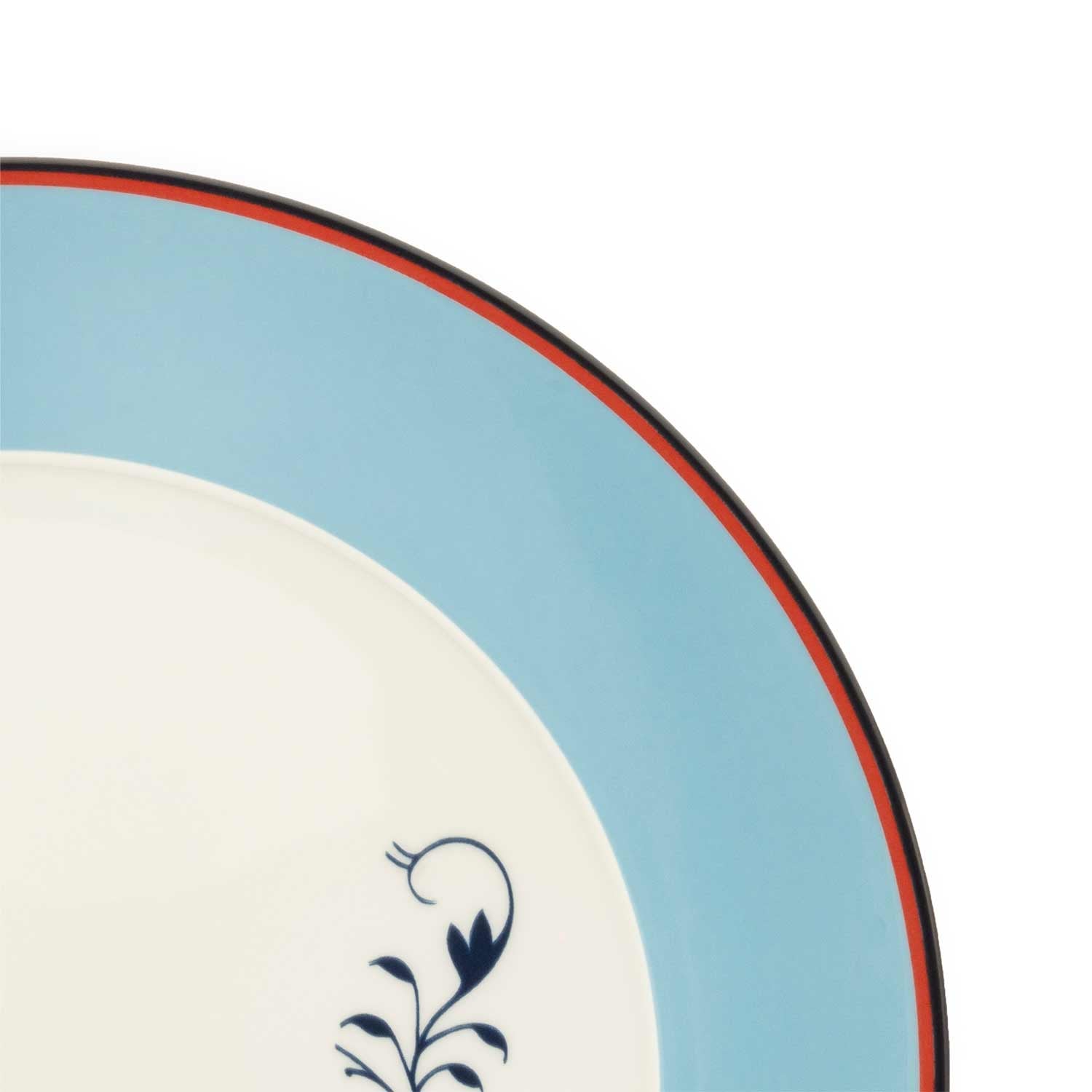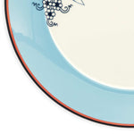 Adorned with a striking blue border and intricate dark creeper plant motifs, the Grape Vine Dinner Plate exudes artistic elegance and natural beauty. Crafted from high-quality materials, it offers a sophisticated backdrop for serving main dishes. Ideal for formal dinners, its refined design enhances the dining experience with a touch of nature-inspired charm. Whether used as a standalone piece or part of a set, this plate embodies craftsmanship and aesthetic appeal, perfect for enhancing any table setting.