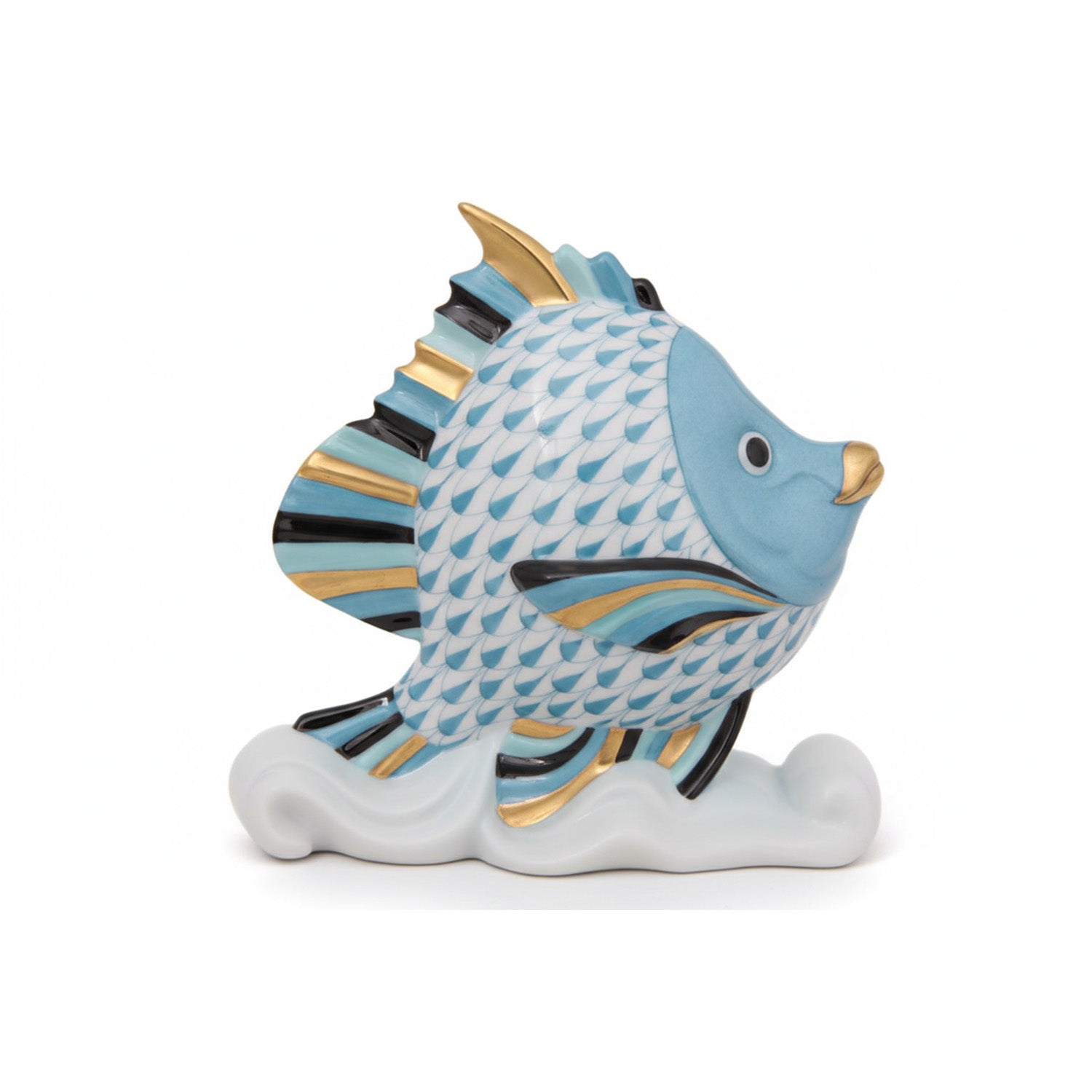 Fish Figurine is a refined Herend figurine, painstakingly decorated by Herend artisans and finished with subtle 24K gold highlights. This charming piece captures delicate detail and brings a touch of whimsy to any collection.