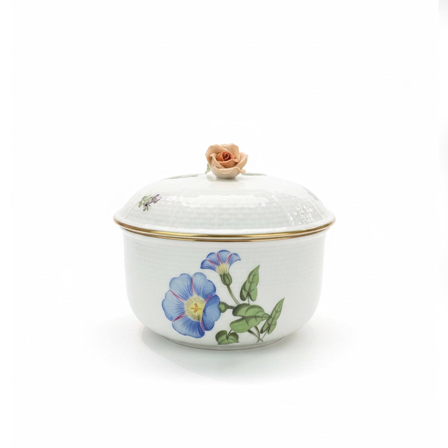 Gustave Morning glory Sugar Pot is painstakingly decorated by Herend artisans and adorned with subtle 24K gold highlights; a charming and useful complement to Herend teaware.