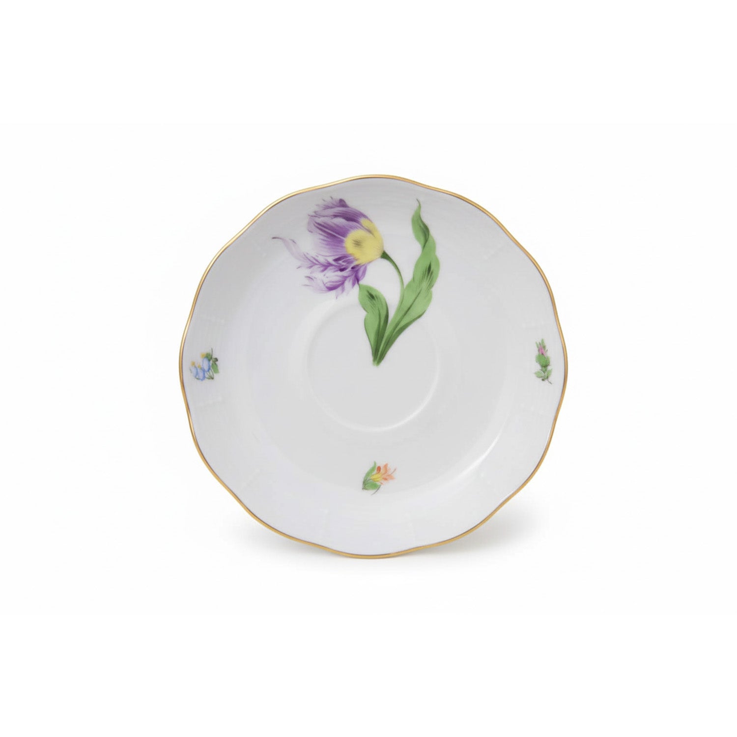 Purple Parrot Tulip Tea Saucer Hand Painted 24K Gold Rim 14 cm
