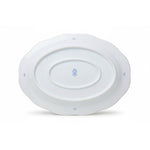 Apponyi Blue Oval Platter is expertly hand-painted and framed by a radiant 24K gold rim, combining decorative artistry with serving utility. It measures 35cm in diameter.