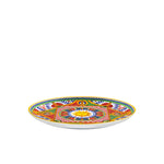 This porcelain platter features a design inspired by an archival foulard print, paying homage to the Carretto Siciliano. This folkloric element is deeply rooted in a heritage of traditions, artistic craftsmanship, and vibrant colors that encompass the essence of Dolce & Gabbana's aesthetic. Crafted for those who seek to showcase their unique personality through a striking presentation, this serving platter is adorned with raised details achieved through the application of clear glaze with a brush, exemplifying exquisite Italian artisanship. With a production technique specially chosen for its durability against scratches and abrasions, this platter is equally decorated on both sides and boasts an elegant coup design.