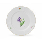 The Purple Parrot Tulip Dinner Plate dinner plate is meticulously hand-painted and edged with 24K gold accents. Generously sized, it brings formal elegance to every course. It measures 28cm in diameter.