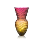 Our most commanding collection yet, we give you Amethyst Drama. We dared to capture the very moment the sun sets and becomes natures finest painter, drenching its canvas in deep velvet pink and burning gold. Finely crafted by our studioÕs artisans, each vase is a unique piece. Delicately balanced between pomp and elegance, bravado and timeless beauty, this is glass art for the bold.