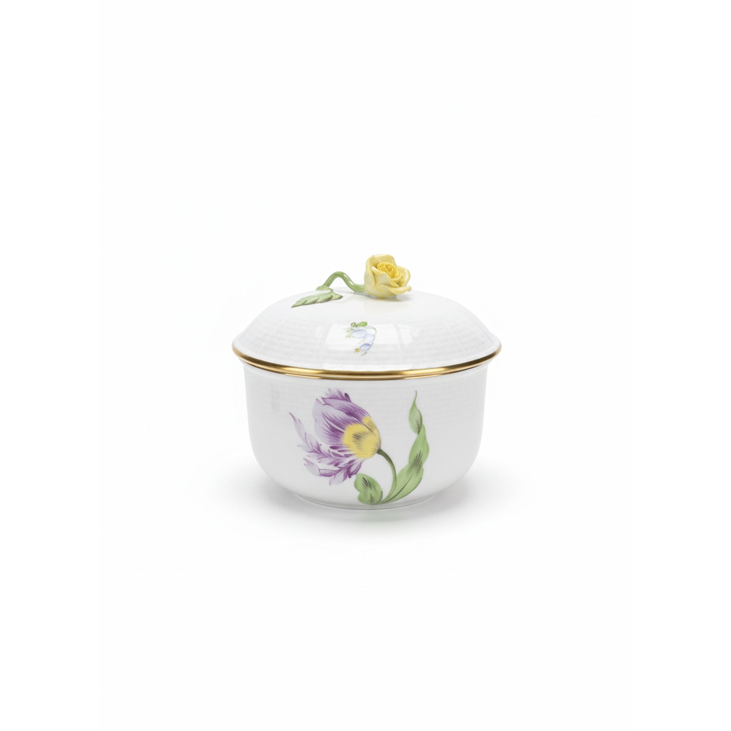 Purple Parrot Tulip Sugar Pot Hand Painted 24K Gold Accents