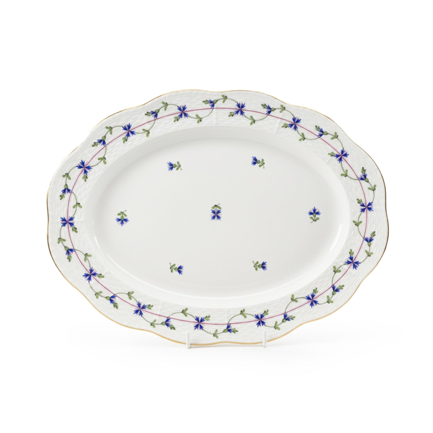 Purple Garland Cornflowers Oval Platter Hand Painted 24K Gold Rim - 35 cm