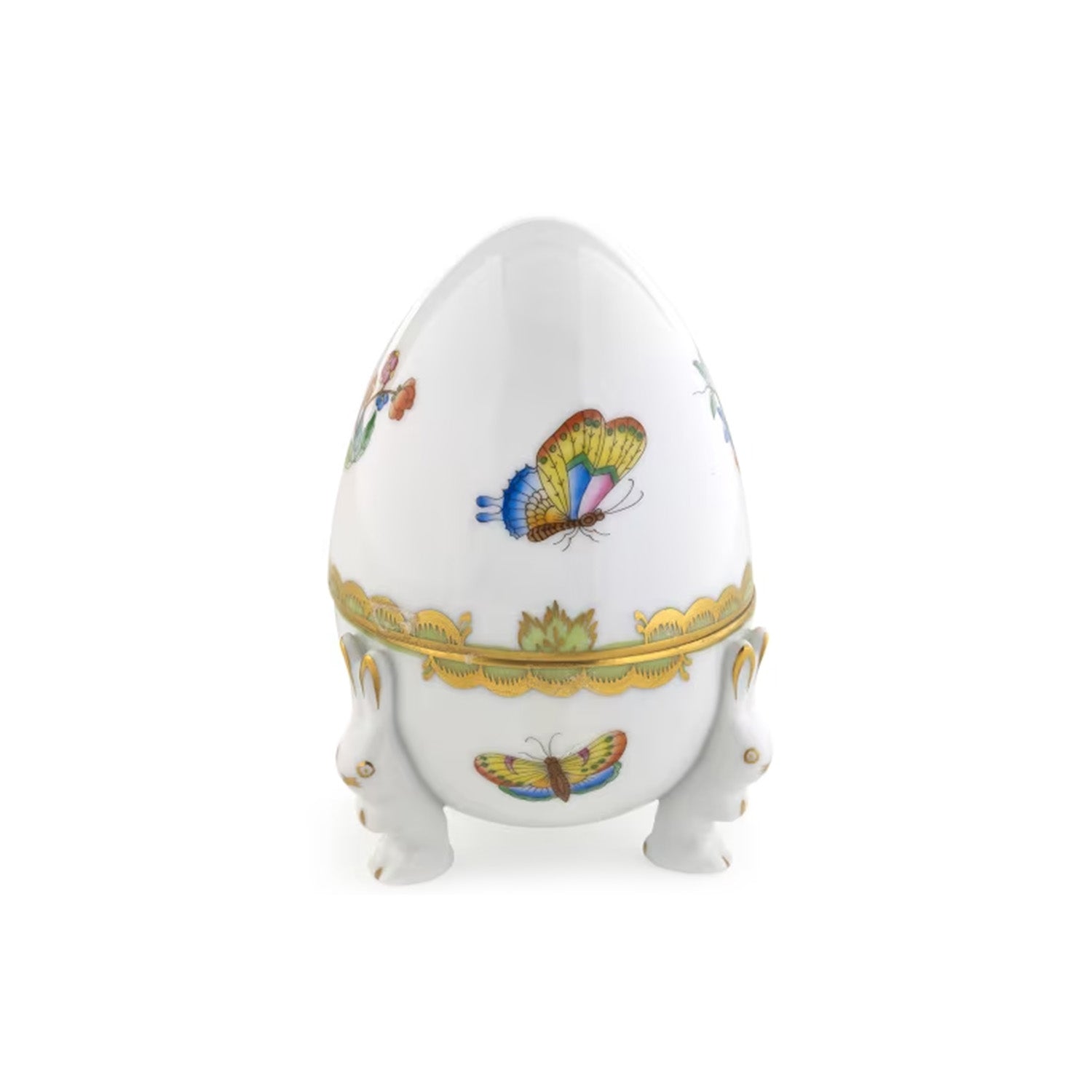 Queen Victoria Egg Shaped Bonbonniere Hand Painted 24K Gold Accents