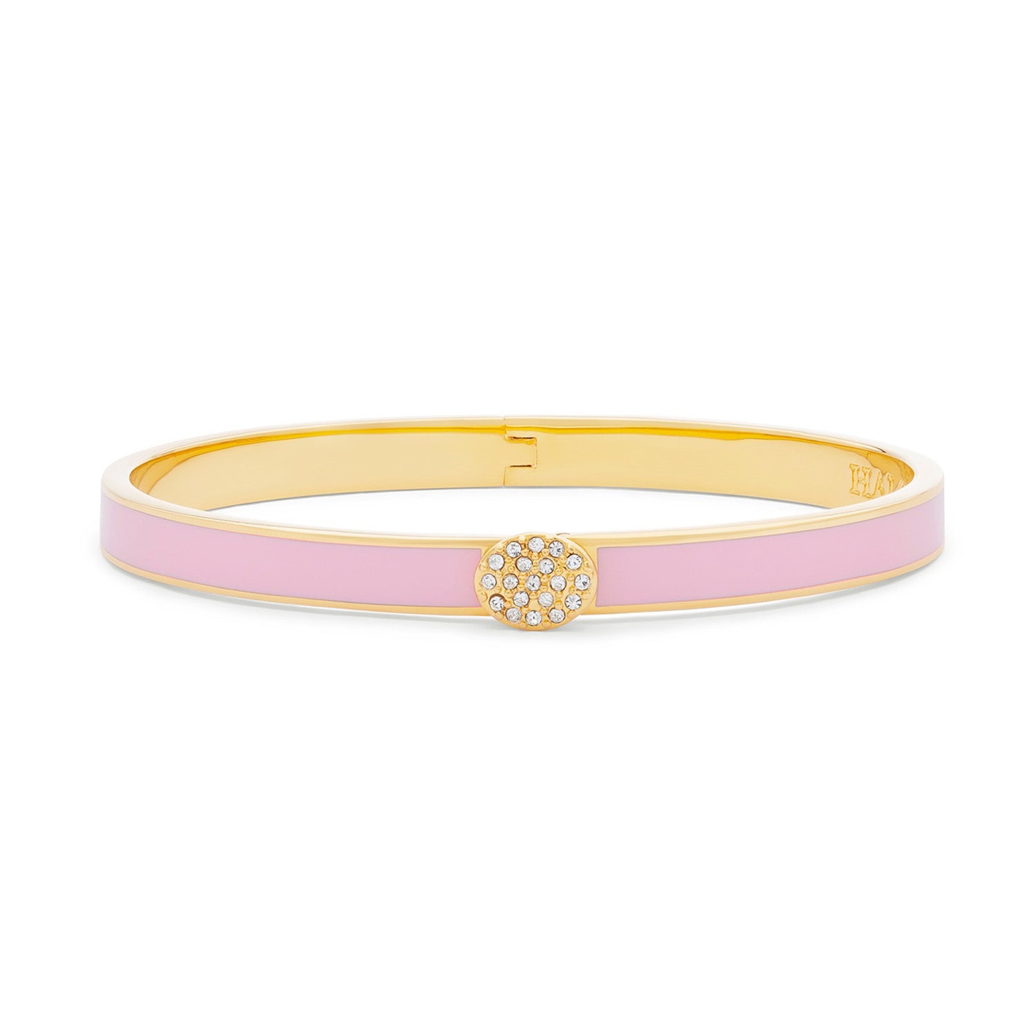 Plain Pave Button Pink & Gold - Hinged Bangle - 6mm