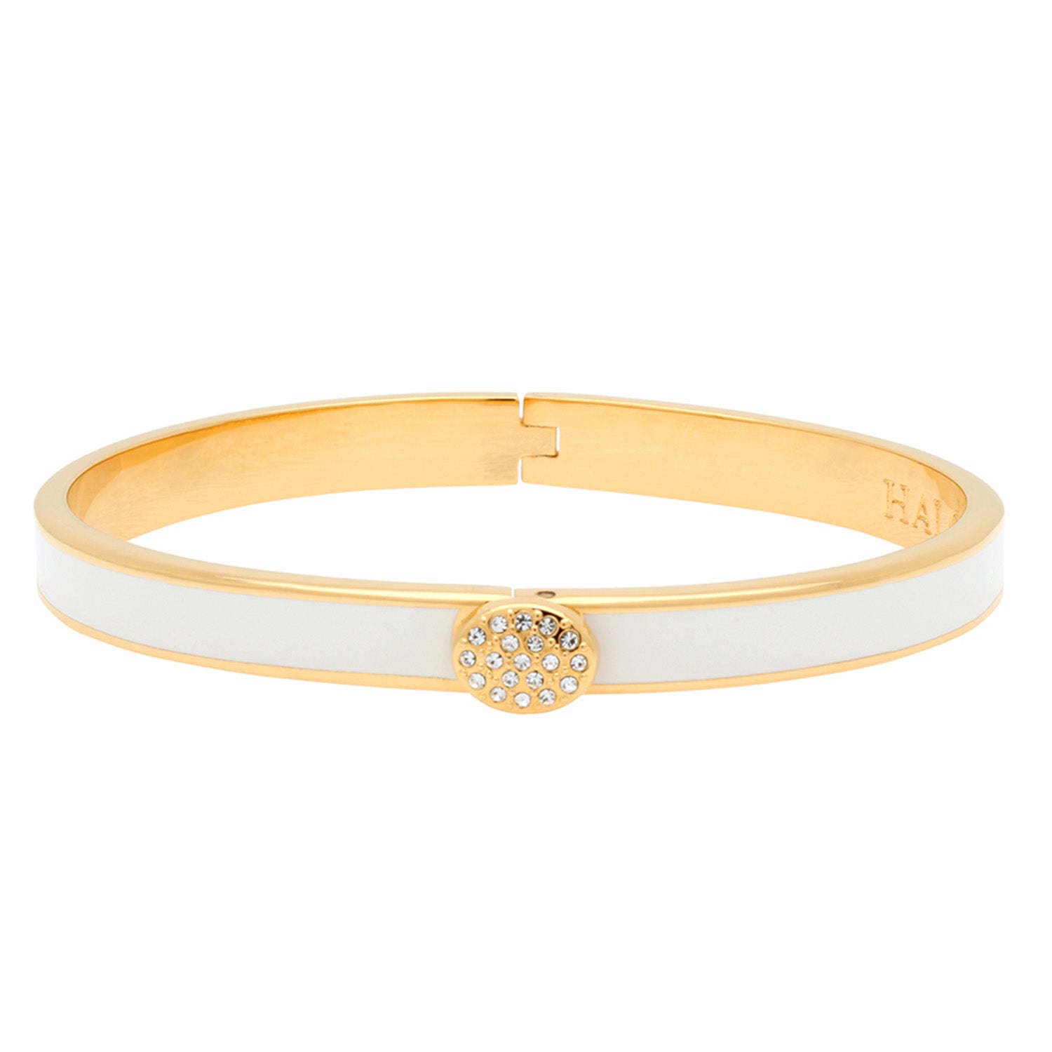 Skinny Plain Pave Button Cream & Gold - Hinged Bangle - 6mm