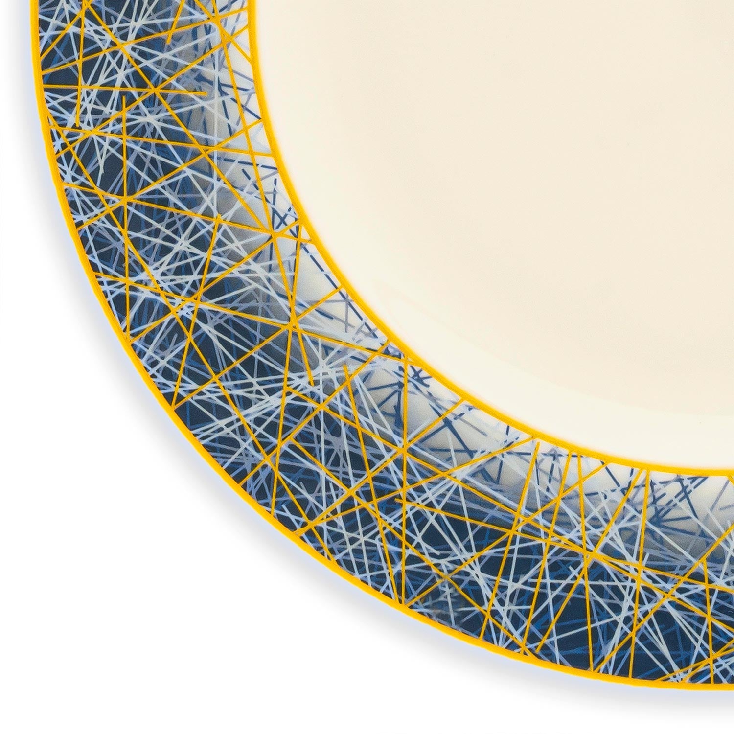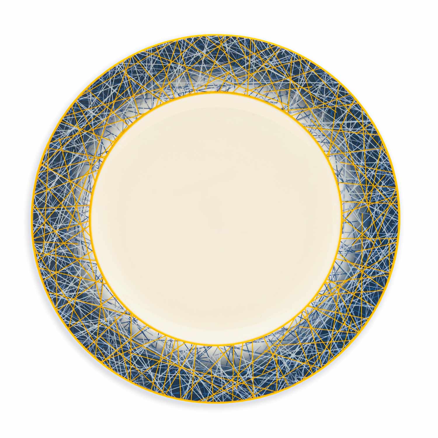 Elevate your dining experience with the Thomas Goode Dinner Plate, featuring a gold-painted internal rim and a blue border adorned with intricate golden patterns. This hand-painted plate is a blend of luxury and functionality, perfect for special occasions or everyday use. The detailed craftsmanship ensures each plate is unique, adding a touch of sophistication to your table setting. The elegant design and high-quality materials make it a standout piece in any dinnerware collection, providing both aesthetic appeal and practical use for your dining needs.