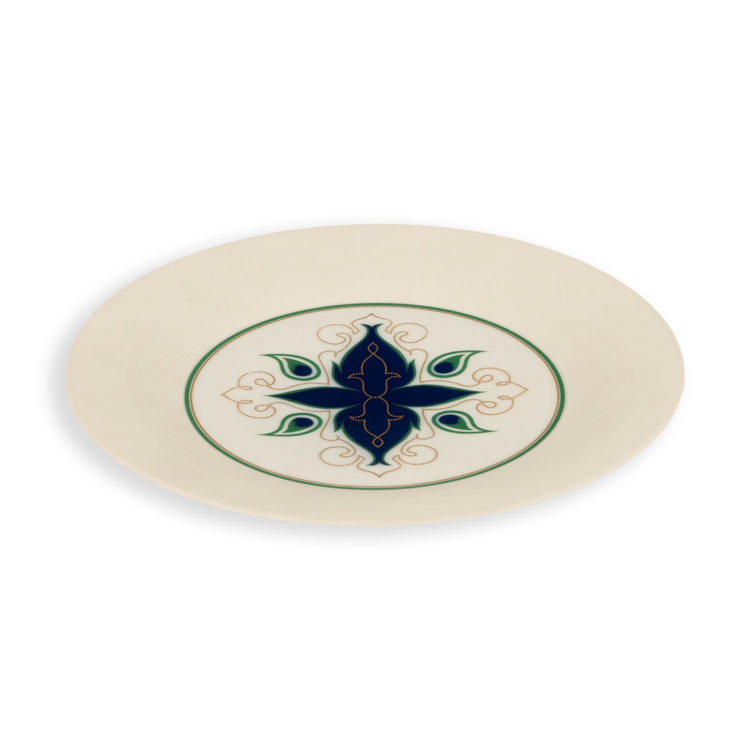 Experience elegance with the Alif Blue-Gold Side Plate, crafted from bisque porcelain. This finely polished plate showcases intricate cobalt and gold details, highlighting a traditional pattern at its center with accents of 24k gold paint. Ideal for formal dining, it doubles as a sophisticated showpiece when displayed on a stand. Perfect for impressing guests, this plate combines beauty and functionality, adding timeless charm to your dining table.