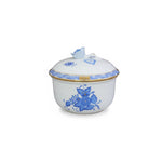 Apponyi Blue Sugar Pot is painstakingly decorated by Herend artisans and adorned with subtle 24K gold highlights; a charming and useful complement to Herend teaware.