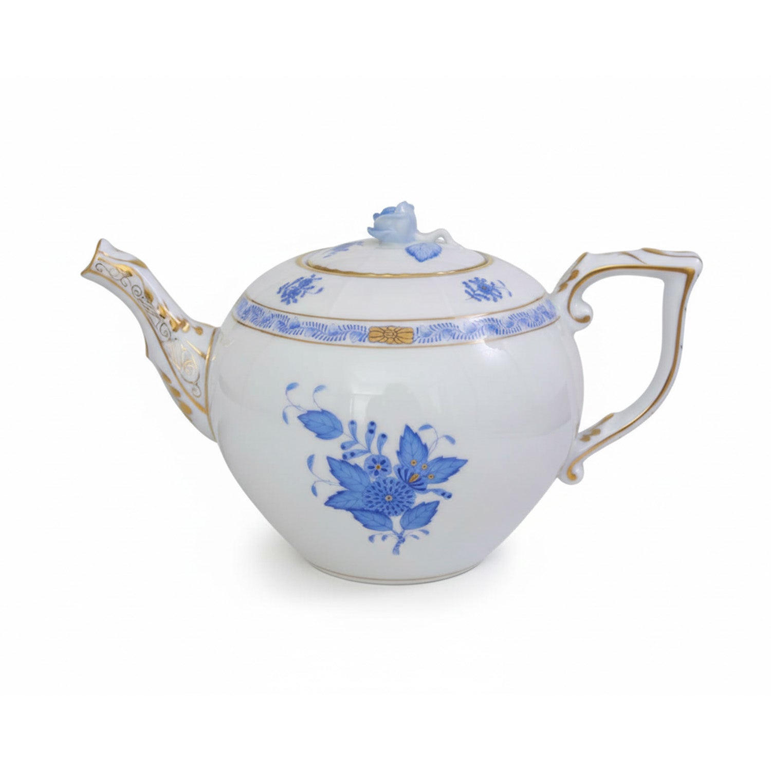 Apponyi Blue Tea Pot Hand Painted 24K Gold Accents 1.25L