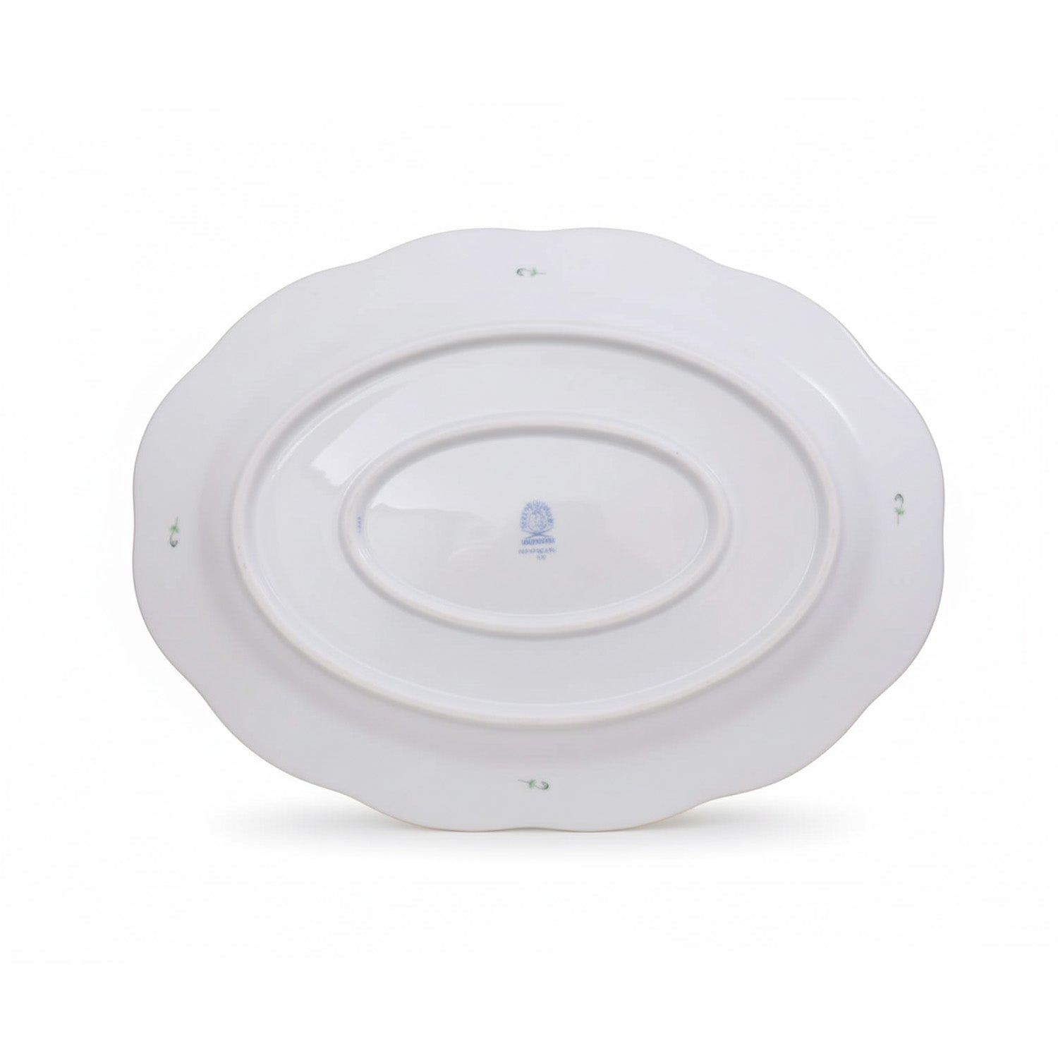 Apponyi Green Oval Platter is lovingly hand-painted and framed by luminous 24K gold detailing, combining decorative artistry with serving utility. It measures 35cm in diameter.