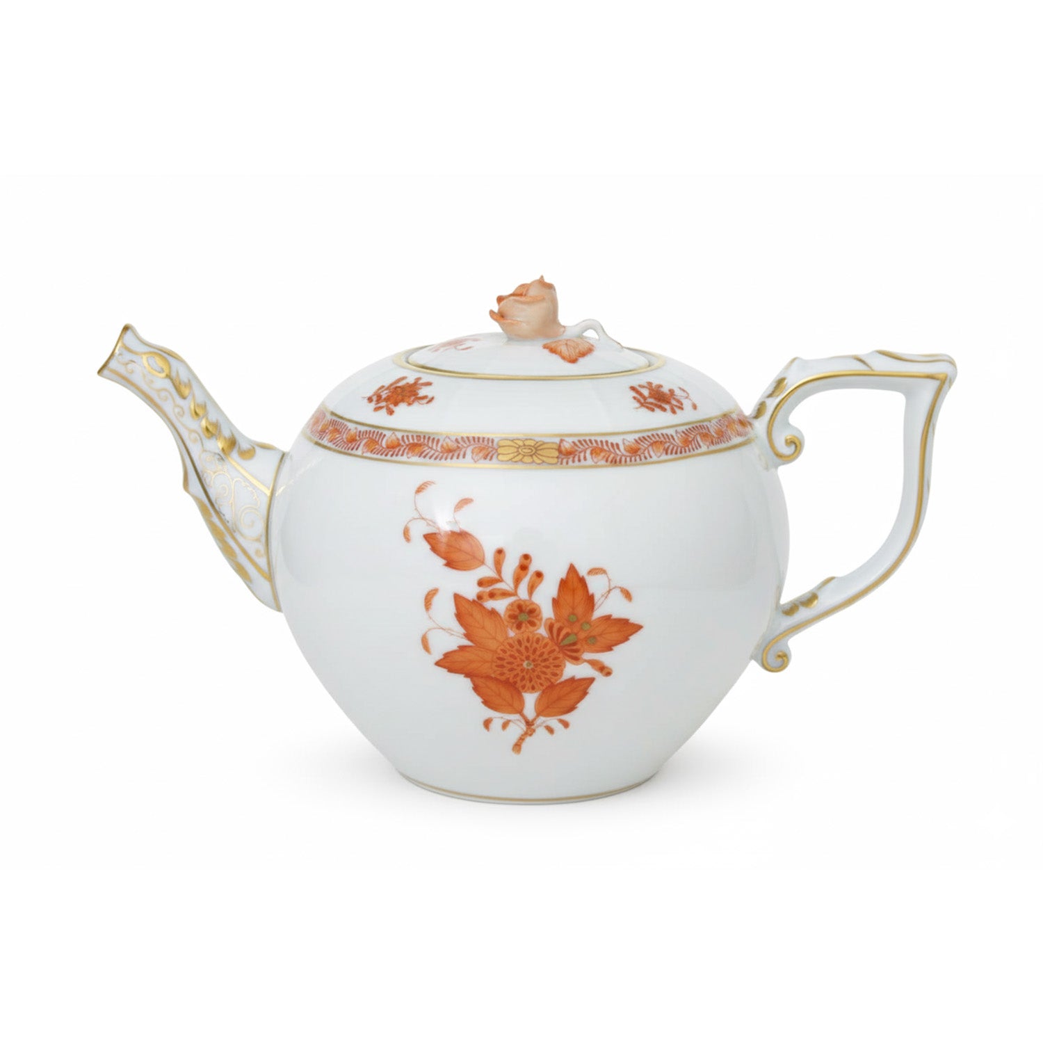 Apponyi Rust Tea Pot blends practical design with Herend artistry. expertly hand-painted and adorned with a radiant 24K gold rim, it is a graceful centerpiece for refined gatherings. It holds 1.25 L.