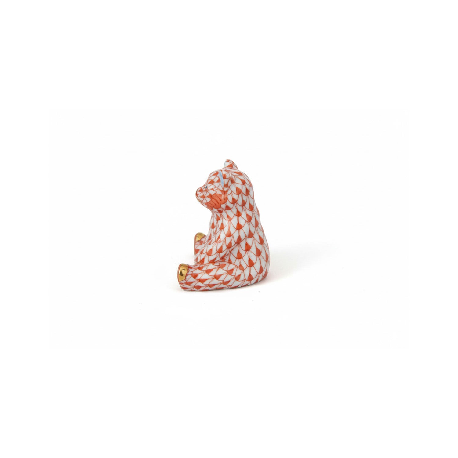 The Baby Bear Sitting Figurine is an exquisite piece from Herend, meticulously hand-painted to highlight every delicate feature. Accented with luxurious 24K gold gilding, this figurine embodies craftsmanship and artistic precision. Its charming design captures the innocence and playful spirit of a sitting bear, making it a sophisticated addition to refined collections. Perfect for displaying on shelves or as a thoughtful gift, this collectible serves as both an artful decor element and a celebration of traditional porcelain artistry.