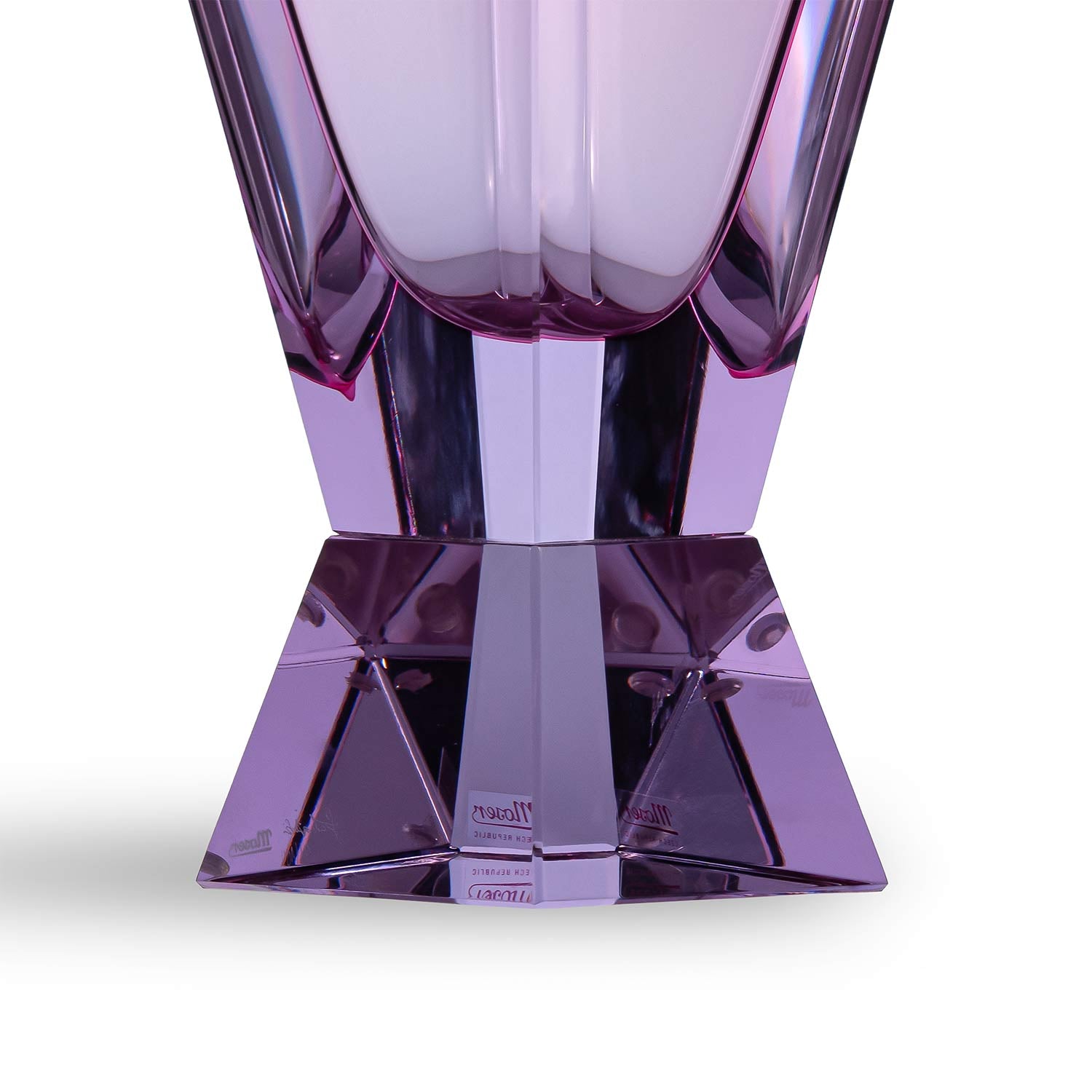 Its asymmetrical shape perfectly captures the beauty of alexandrite and rose crystal, showcasing Moser's mastery of color and form. Add a touch of traditional elegance with a modern twist to your décor with this unique centerpiece. Its exquisite craftsmanship and one-of-a-kind design will surely make it stand out as a striking decorative accent.