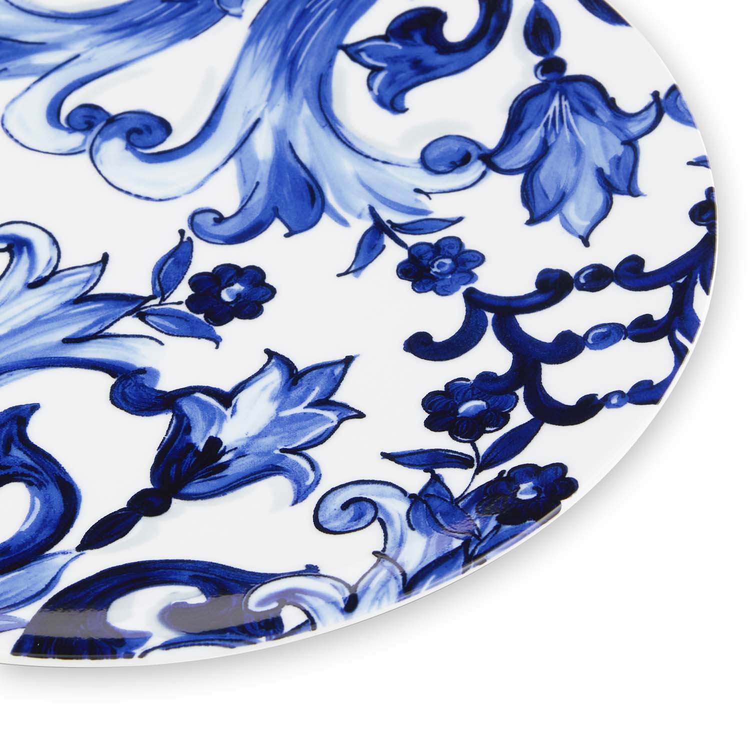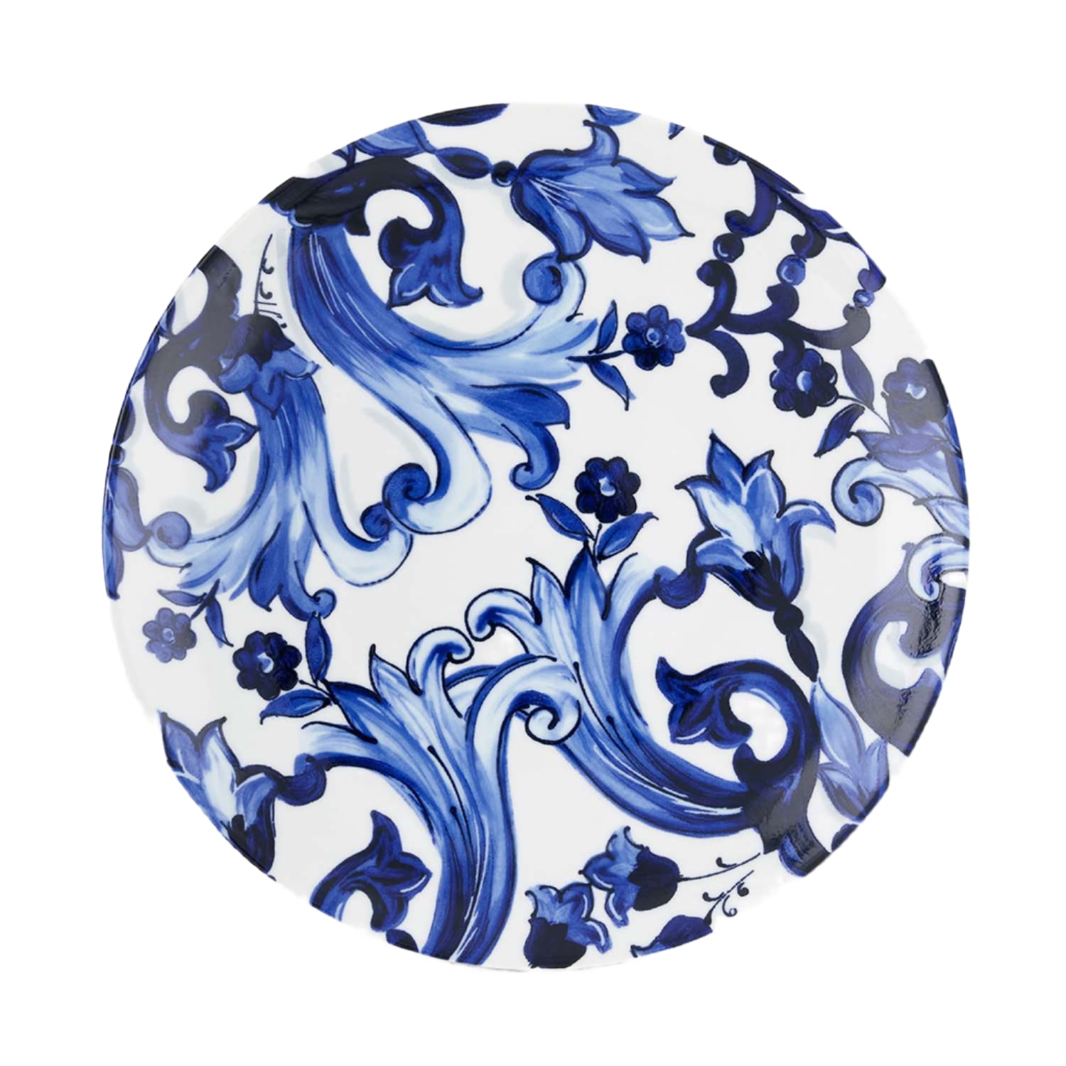 Indulge in the vibrant hues of Dolce&Gabbana's Blu Mediterraneo with our porcelain charger plate, inspired by a sensory journey of scents, sounds, and sensations. Elevate your table setting with this exquisite decorative plate, adorned with raised details handcrafted by skilled Italian artisans. Both elegant and durable, this underplate boasts a coup design and is resistant to scratches and abrasions.