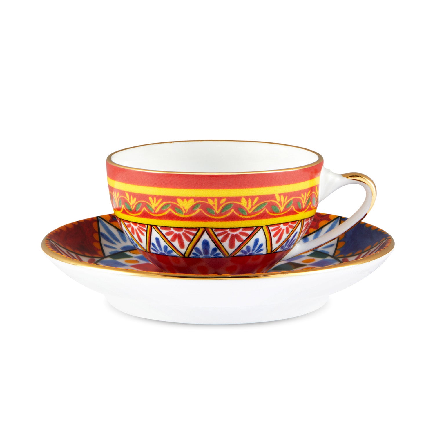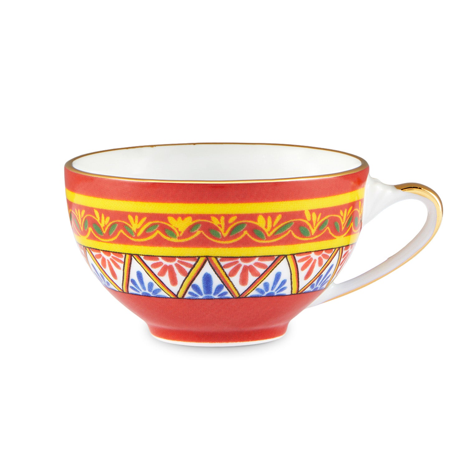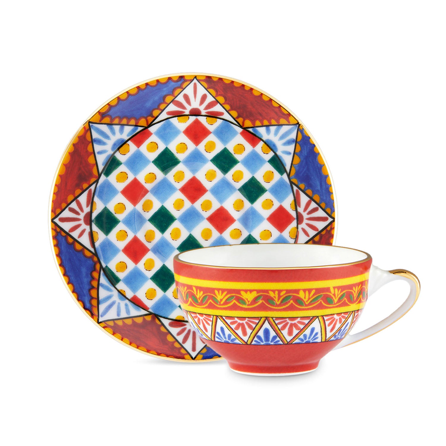 Indulge in everyday luxury with this charming coffee cup and saucer set. Made with durable porcelain and adorned with a captivating foulard-inspired design, it captures the essence of traditional Italian artistry. The manual gold brushstrokes and the iconic Dolce&Gabbana logo add a touch of sophistication, making it a statement piece for your table setting. Crafted with care and thoughtfully designed, this set is not just a functional item, but a testament to the passion and craftsmanship that goes into creating a truly exceptional product. Its resistance to scratches and abrasions ensures a lasting addition to your collection.