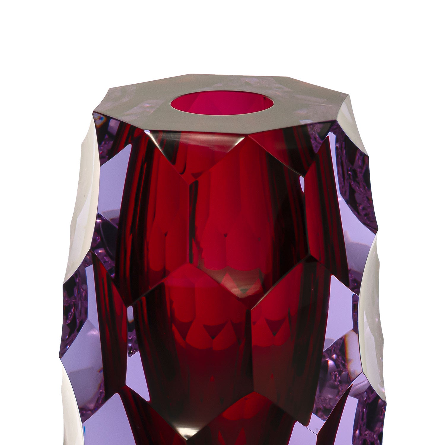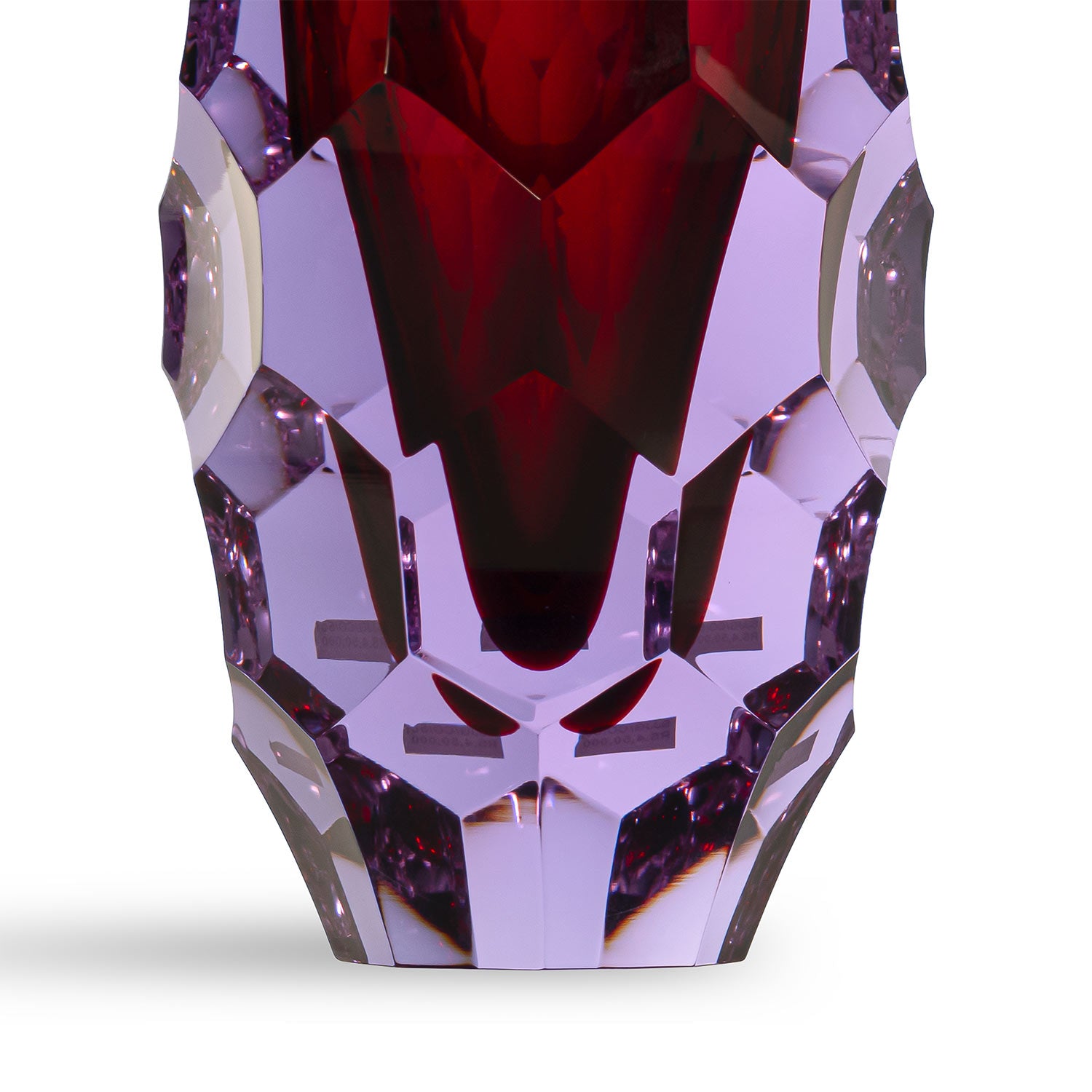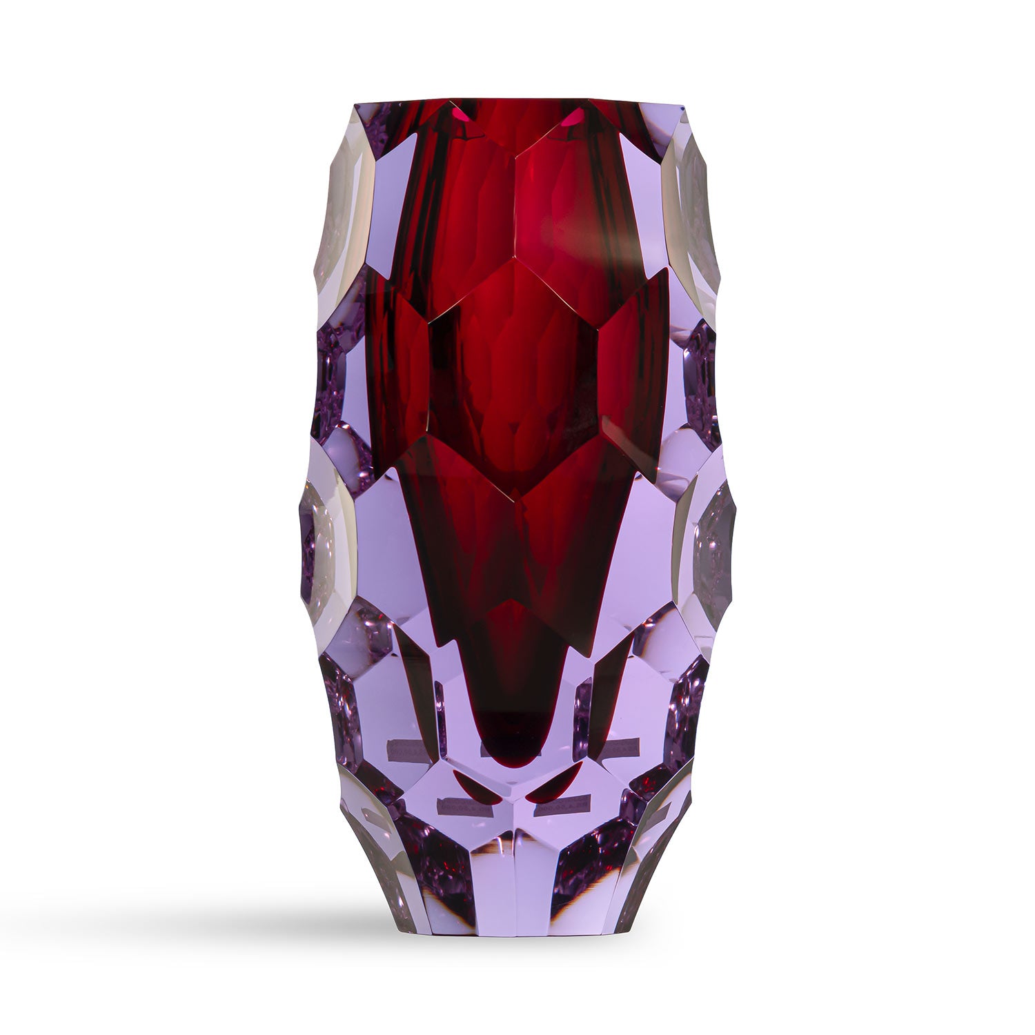 The Moser Cone Rose Vase unites the matchless structure of a pine cone with sophisticated Moser coloring. This vase turns cut crystal into a jewel, creating a kaleidoscope of reflections on its deep cut and high gloss surfaces. The traditional Moser colors captivate with their ever-changing looks. Whether as a focal point in your home or as a modern design statement, the Cone vase showcases masterful craftsmanship and timeless beauty.
