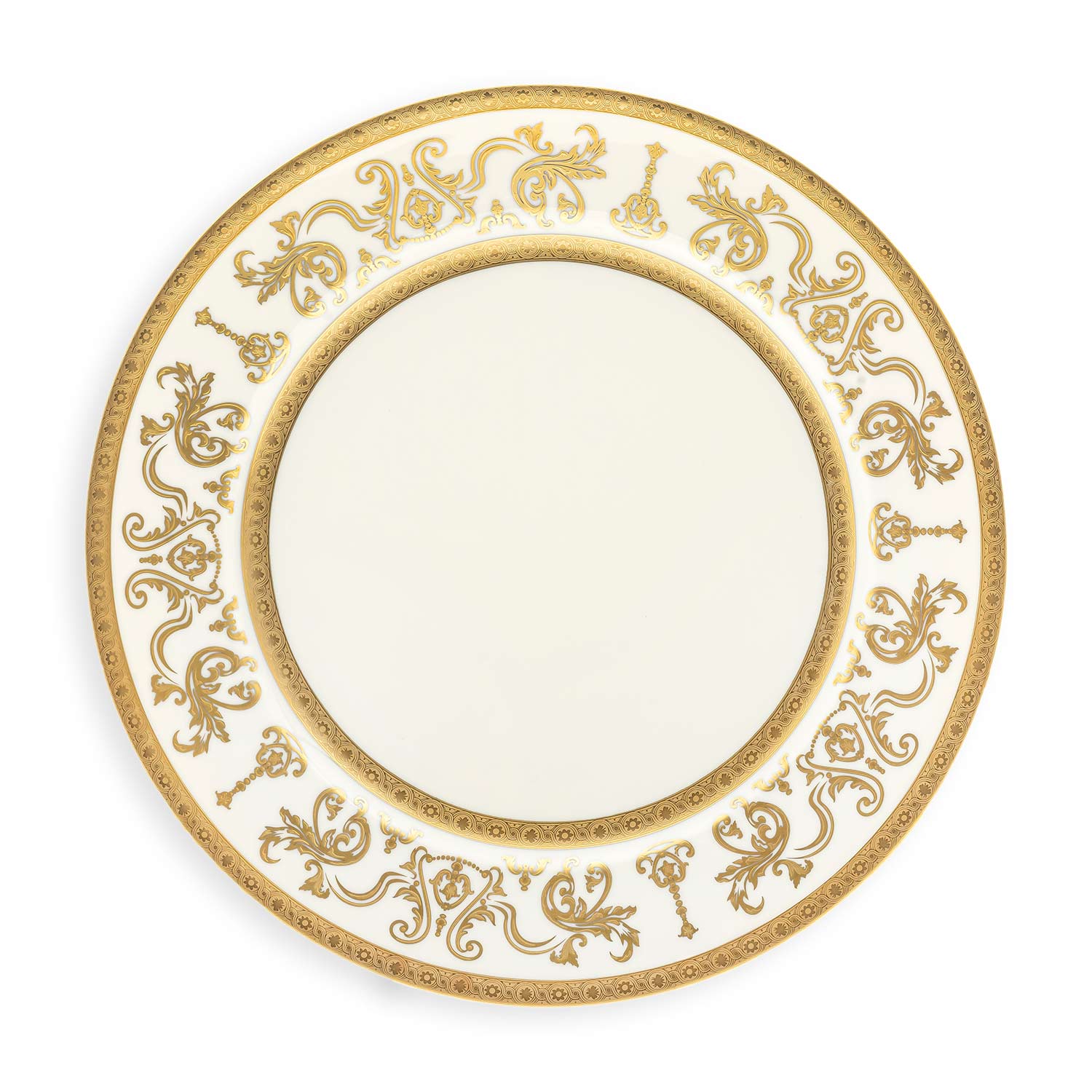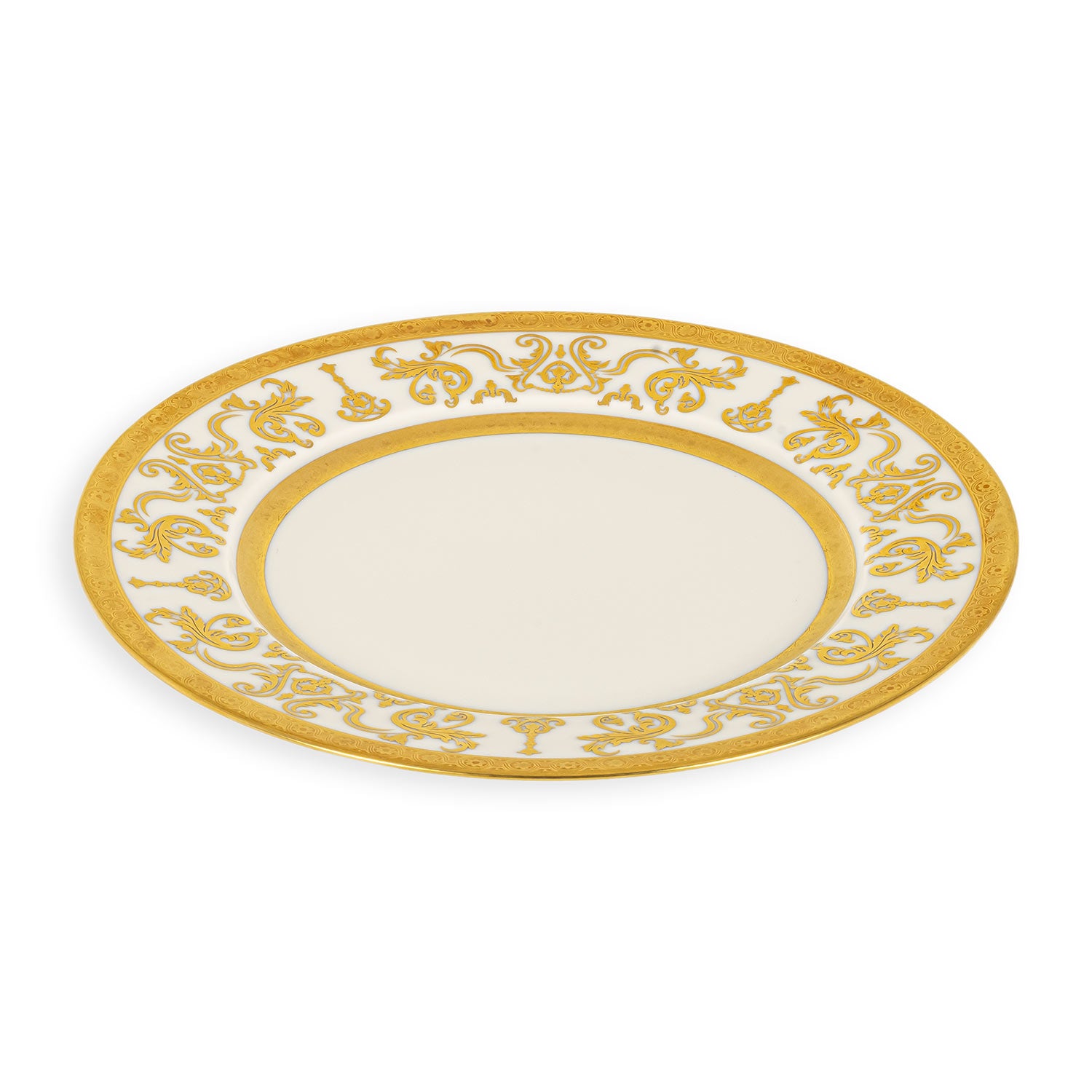 Inspired by the original decor of The Shangri-La Hotel in Paris, a historical monument since 2009, this exquisite side plate exudes sophistication and elegance. Made from Porcelain and embellished with a 24k gold hand-painted design, it features soft blue celadon, ivory, and pure white tones that harmonize beautifully with genuine matte gold. This elegant piece will enhance your crockery cabinet, adding refined charm. Additionally, it serves as a stunning decorative item, whether displayed on a wall or on a stand in a cabinet, bringing a touch of luxury to any space.